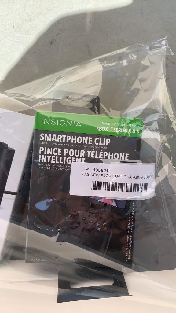 2 AS NEW XBOX DUAL CHARGING STATIONS WITH RECHARGABLE BATTERY PACK, CHAT HEADSET, AND SMARTPHONE CLIP