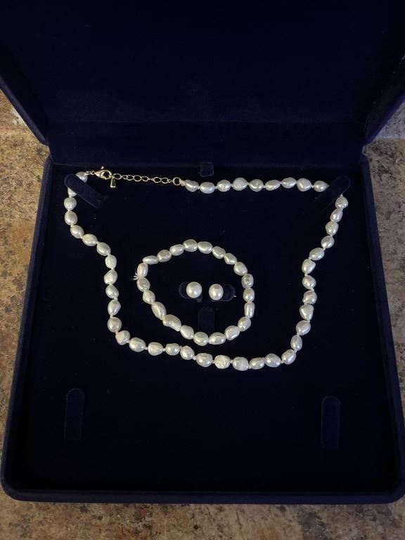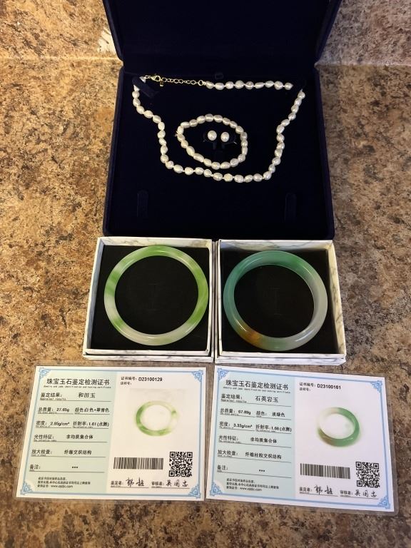 2 AUTHENTIC JADE BRACELETS W/ PEARL NECKLACE GIFT SET
