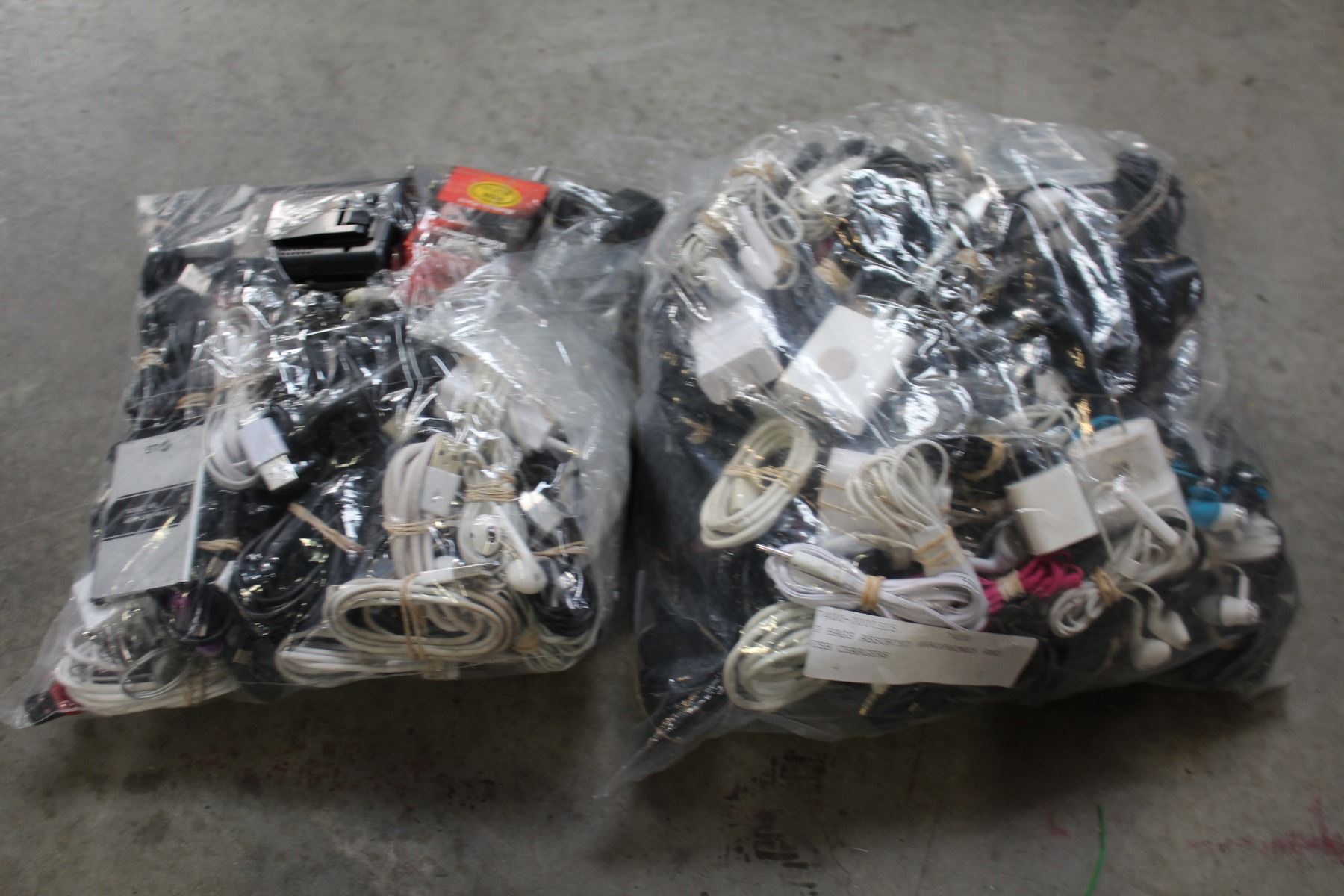 2 BAGS ASSORTED HEADPHONES AND USB CHARGERS