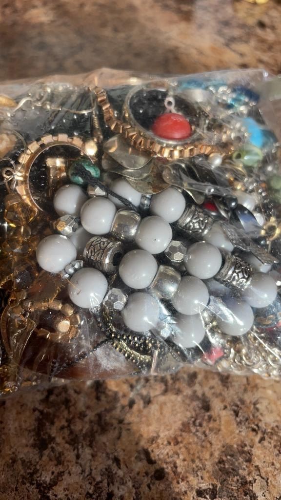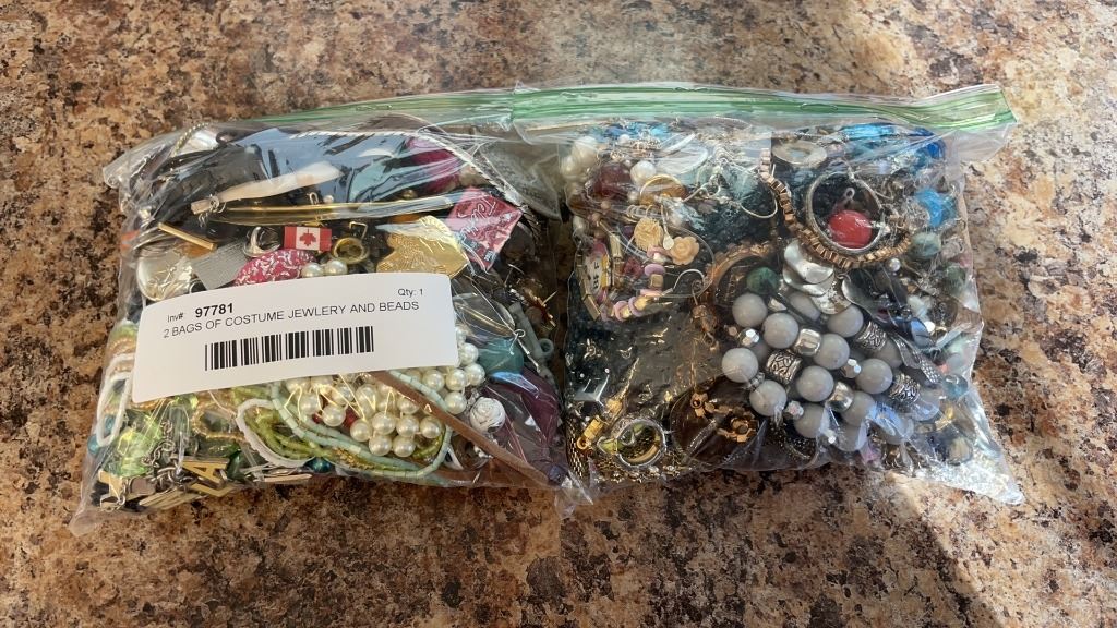 2 BAGS OF COSTUME JEWLERY AND BEADS