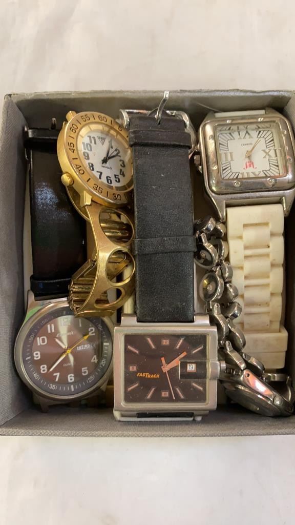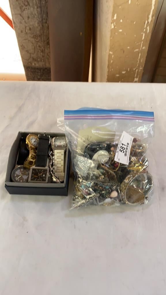 2 BAGS OF JEWELRY AND TRAY OF WATCHES