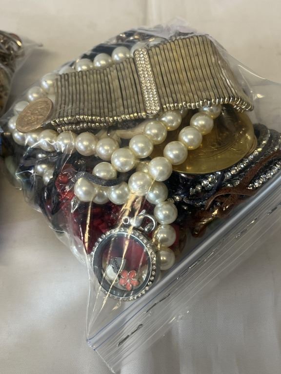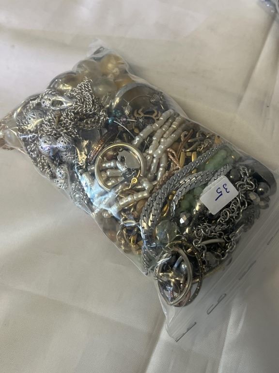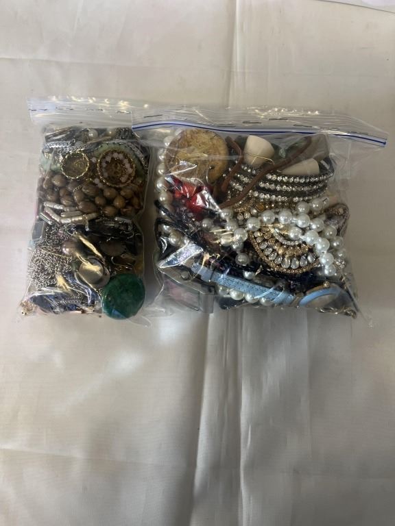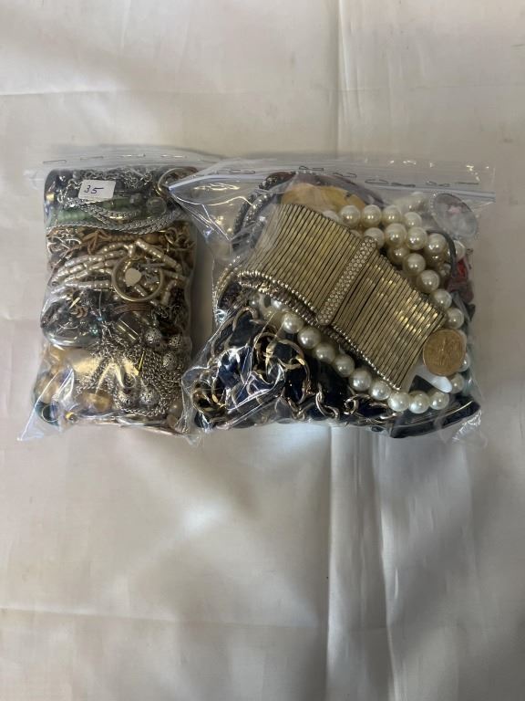 2 BAGS OF MISC JEWELLRY AND PARTS, SOME WATCHES, ETC