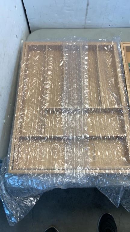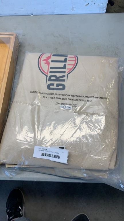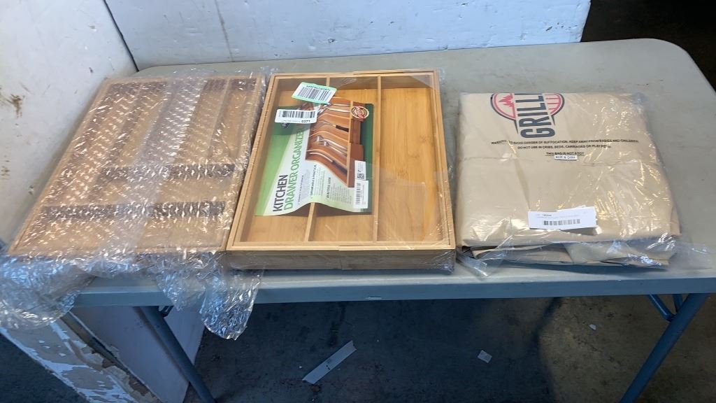 2 BAMBOO CUTLERY TRAYS AND BBQ COVER