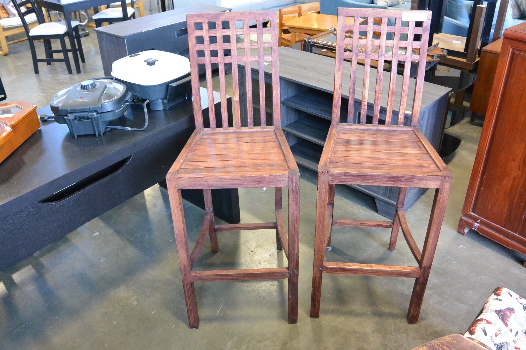 2 BAR HEIGHT WOOD CHAIRS