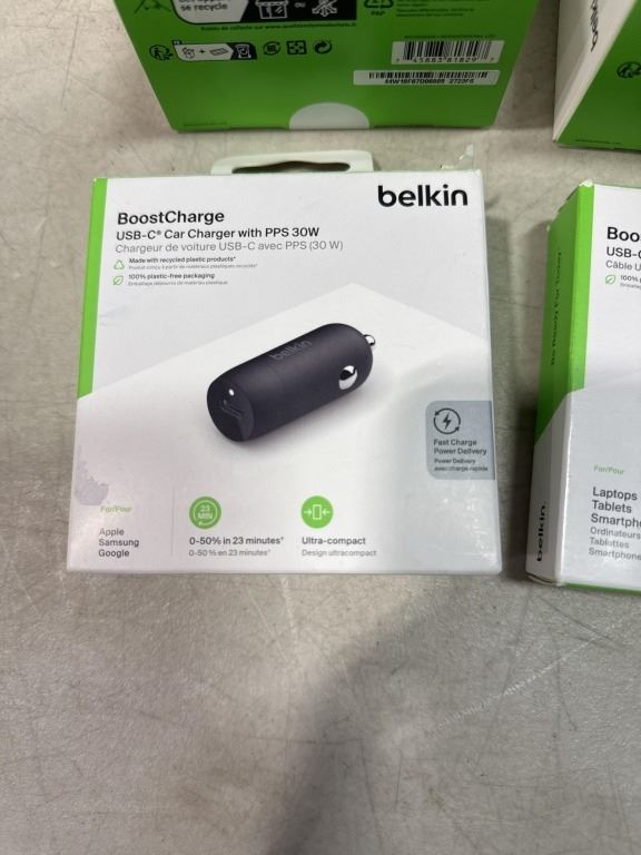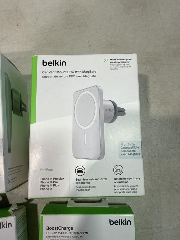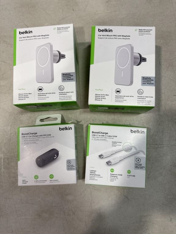 2 BELKIN CAR VENT MOUNTS WITH MAGSAFE, USB-A TO USB-C CABLE AND USB-C CAR CHARGER 20W