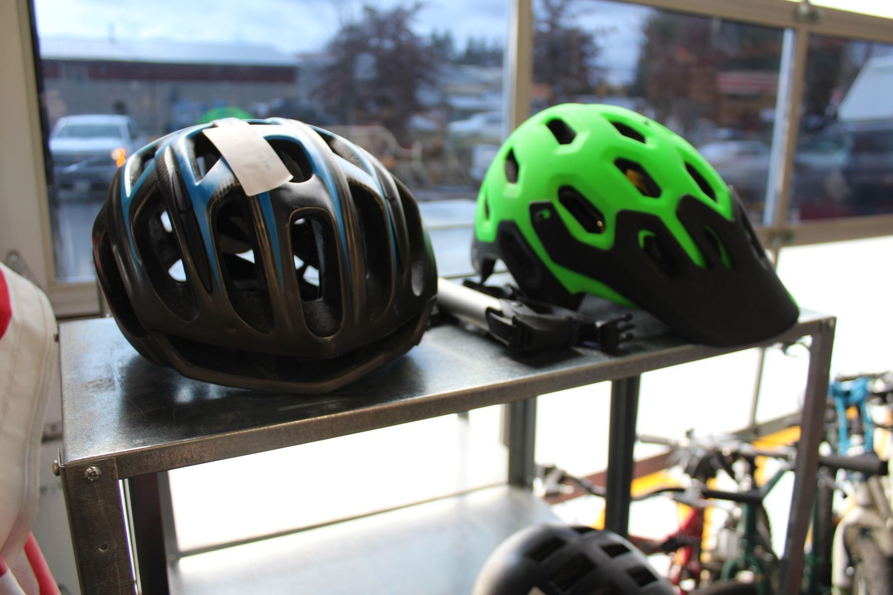 2 BIKE HELMETS AND BIKE PUMP