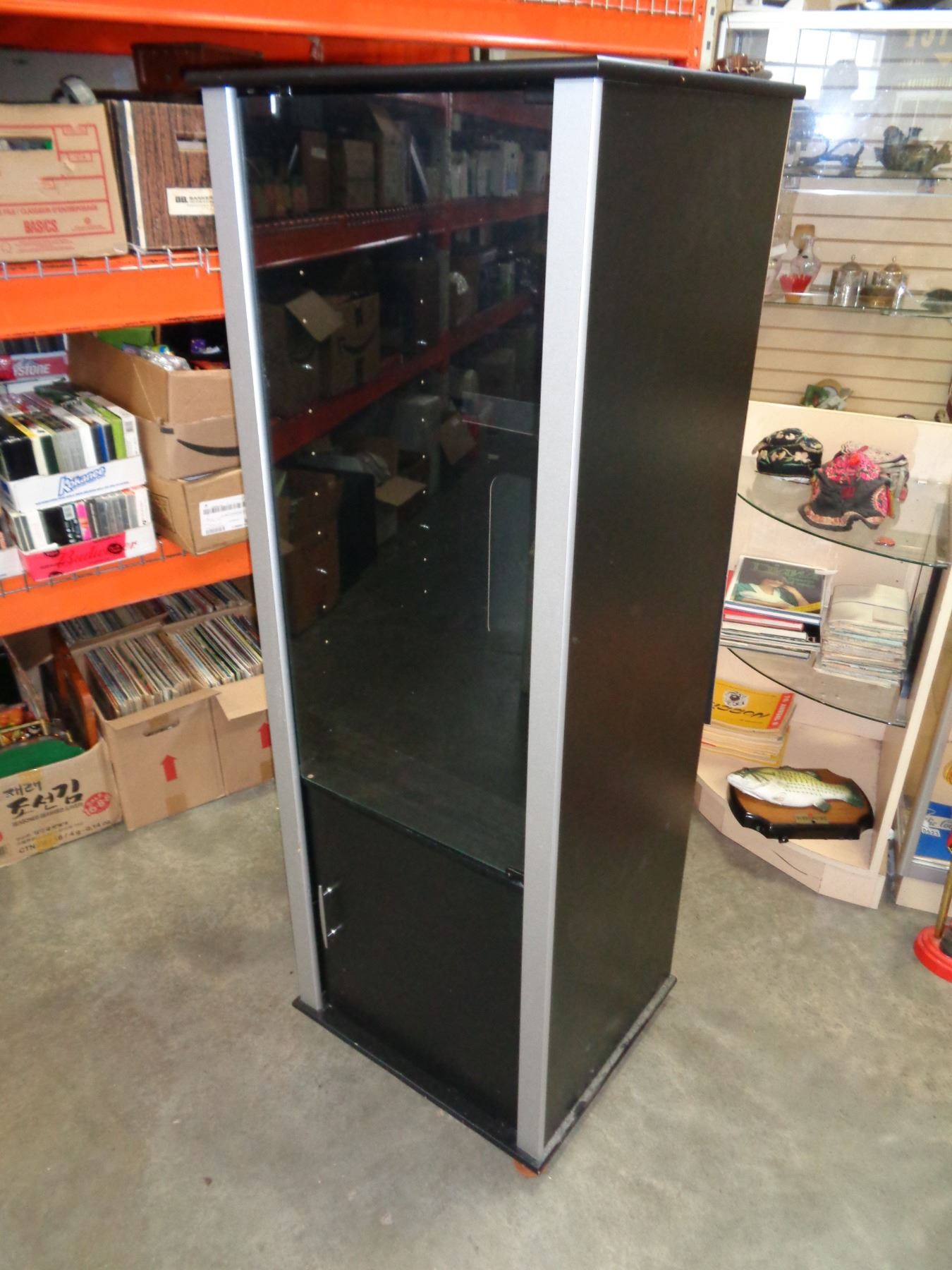 2 BLACK AND GREY GLASS DOOR CABINETS