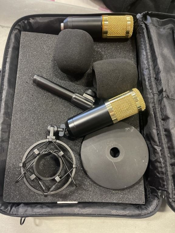 2 BM-800 CONDENSER MICROPHONES WITH WINDSCREEN STAND IN CASE