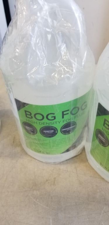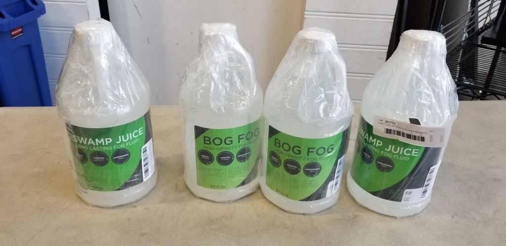 2 BOTTLES OF BOG FOG HIGH DENSITY FOG FLUID AND 2 BOTTLES OF SWAMP JUICE. 64 FL OZ PER BOTTLE