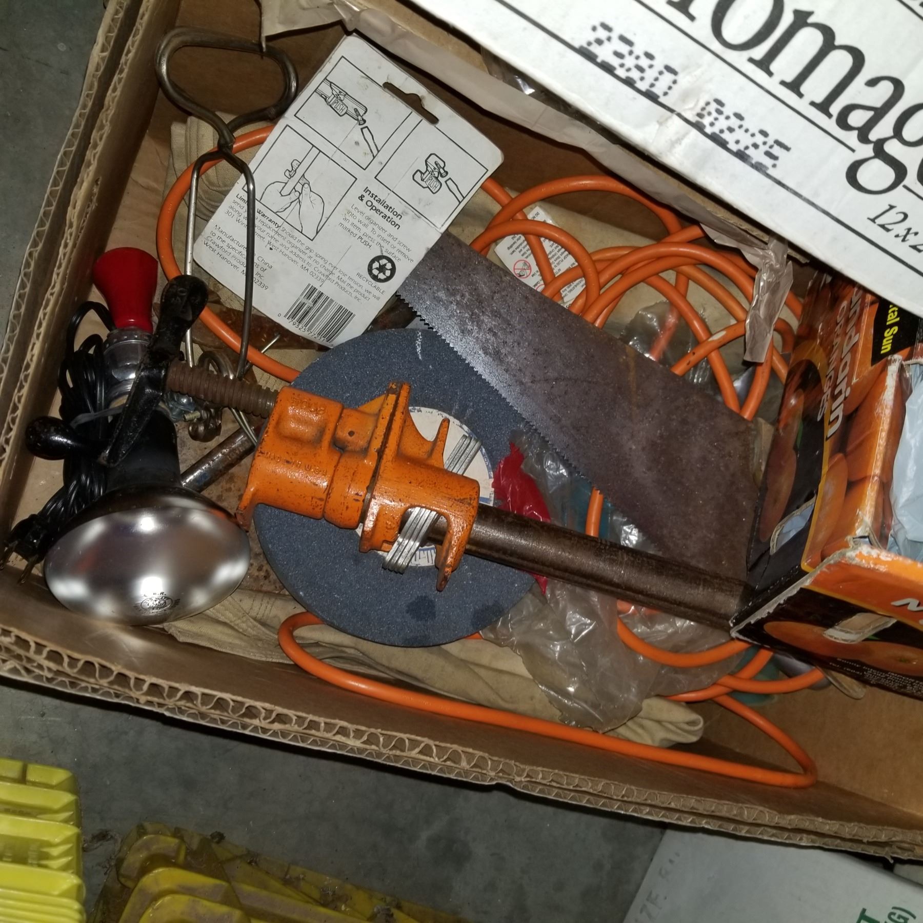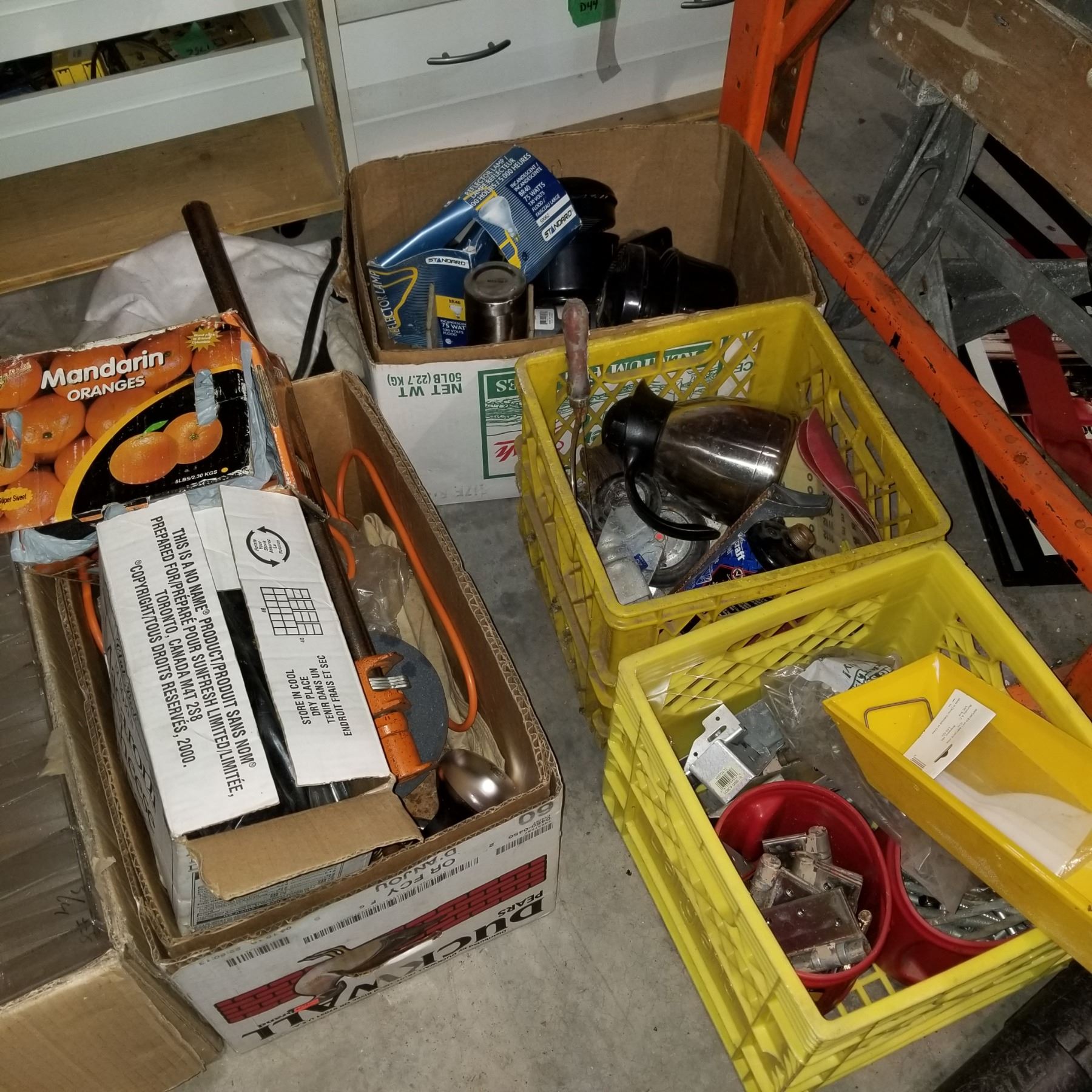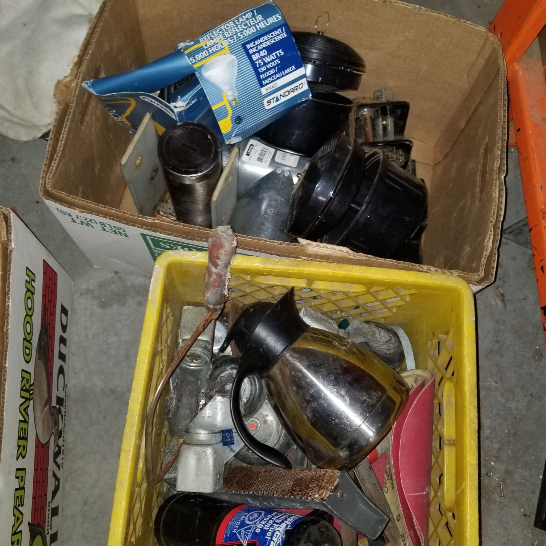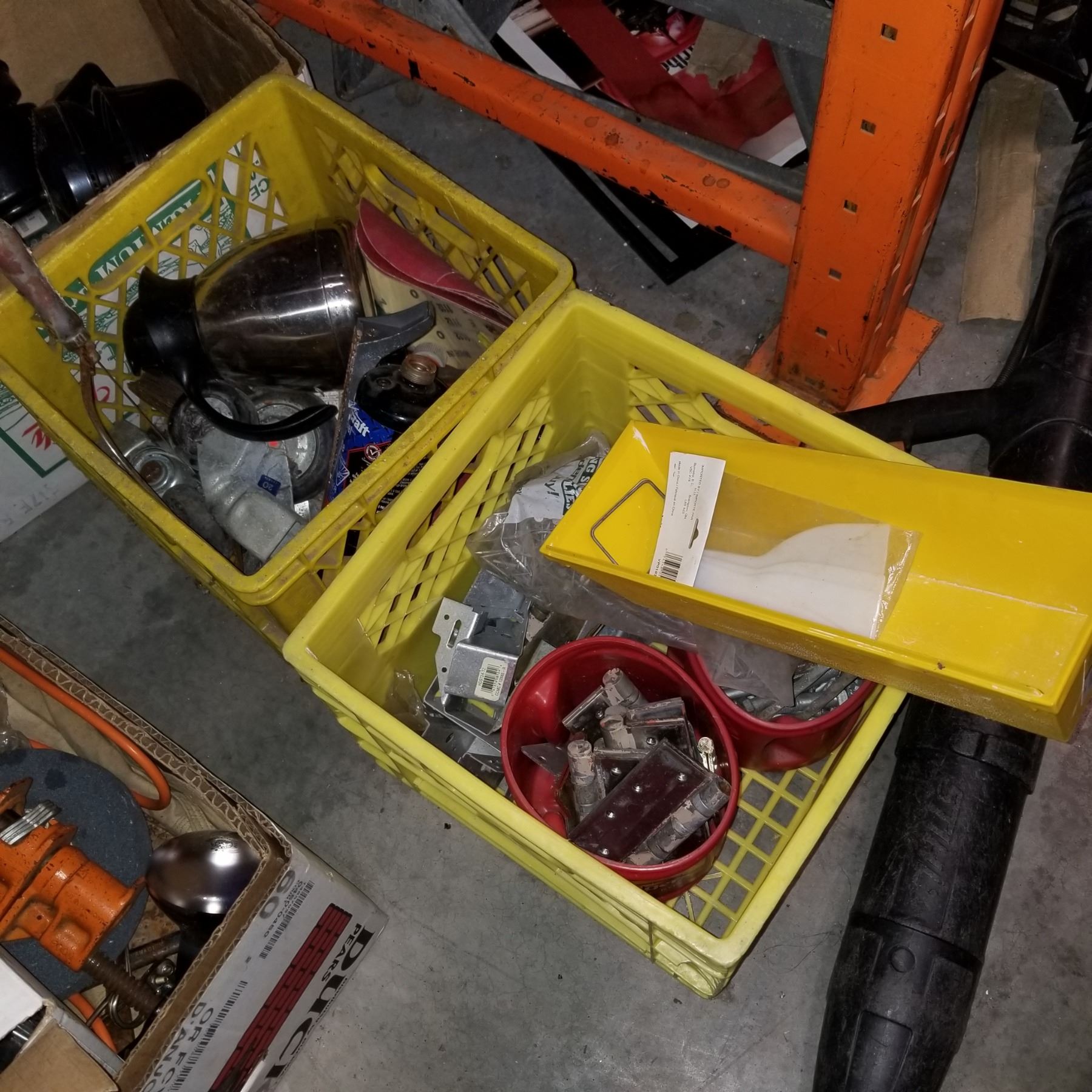 2 BOXES AND 2 CRATES OF CAR SHOP SUPPLIES AND HARDWARE