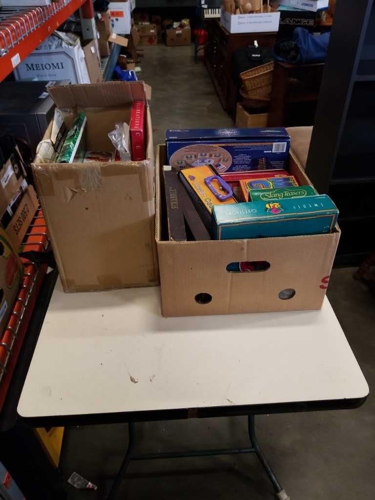 2 BOXES BOARD GAMES, SERVING PLATTERS, HAMBURGER PRESS AND COOKIE SHOT GLASS MOLD