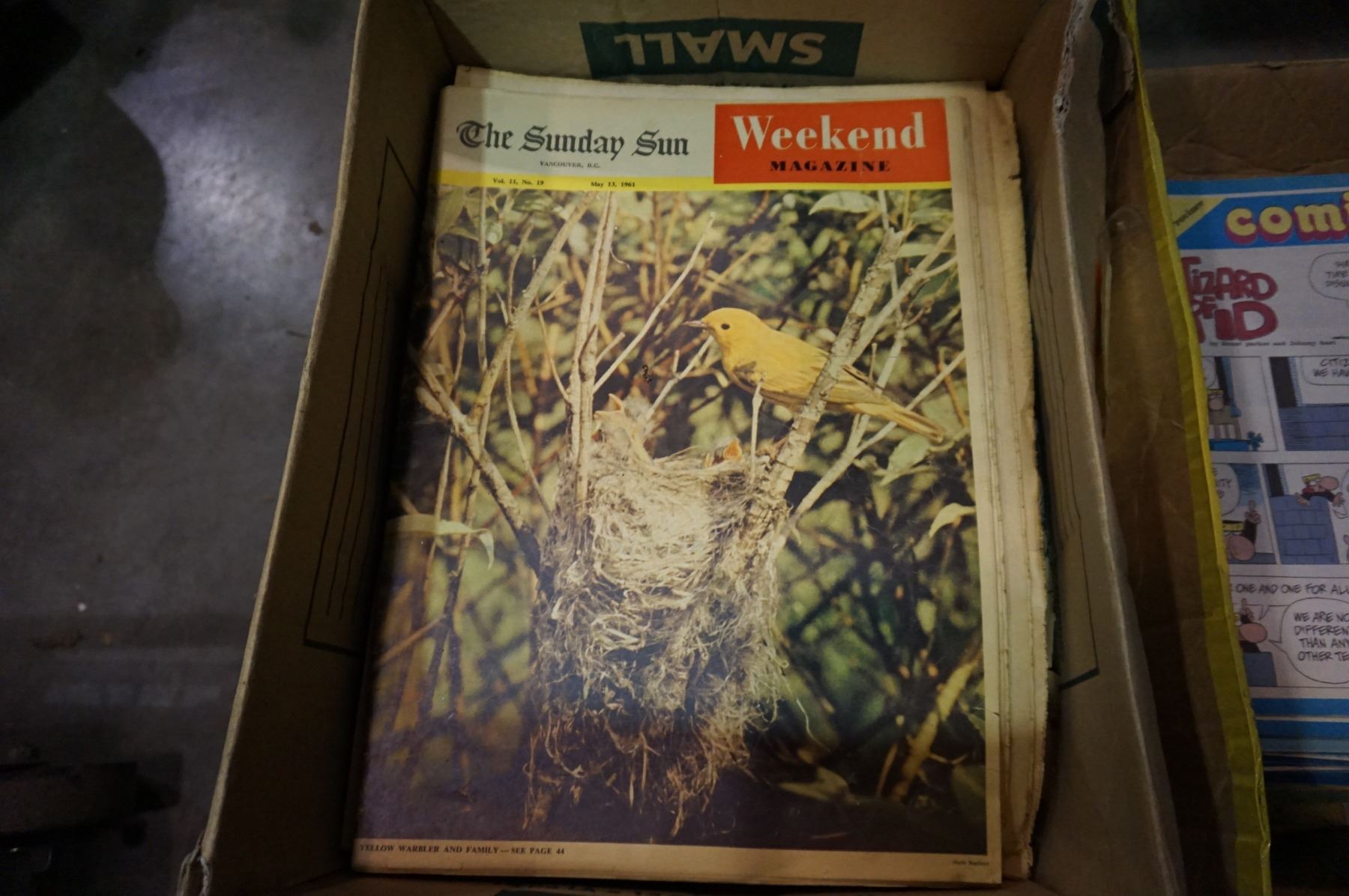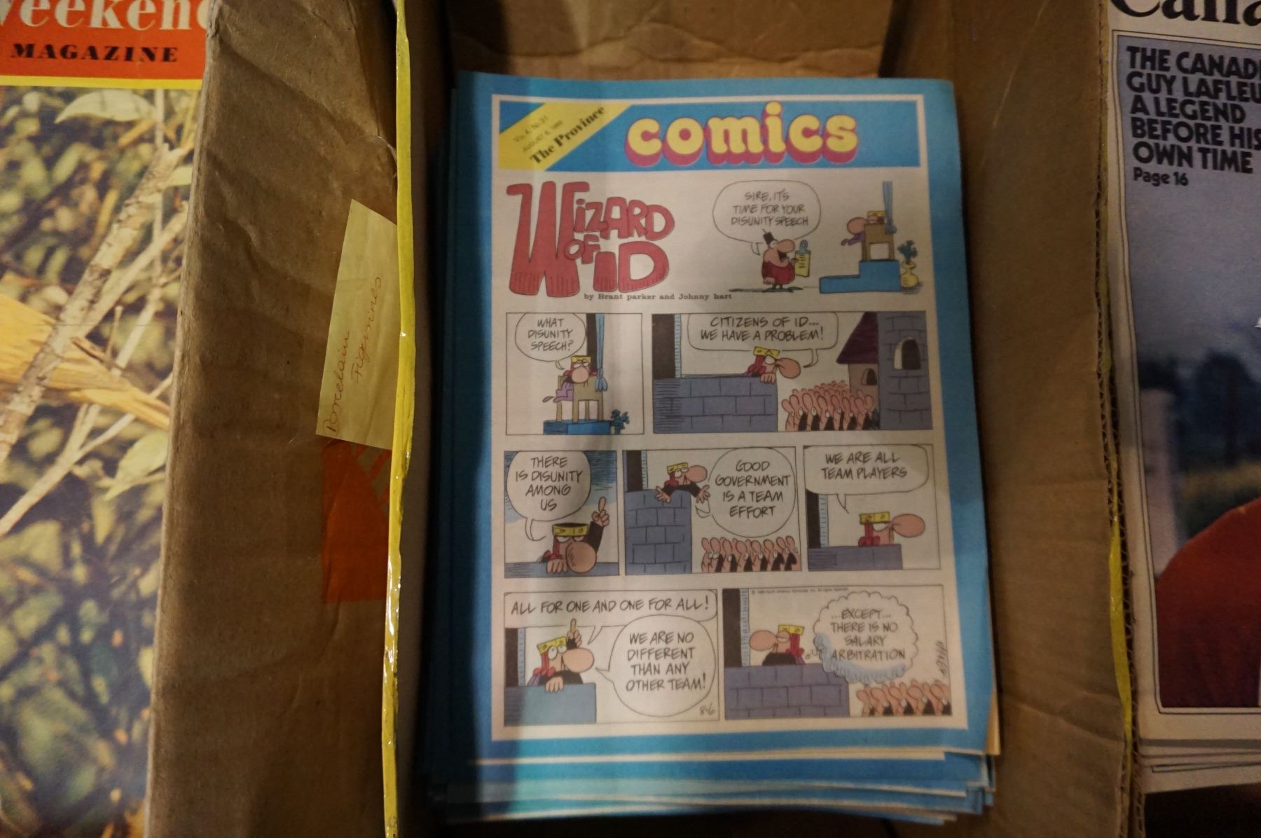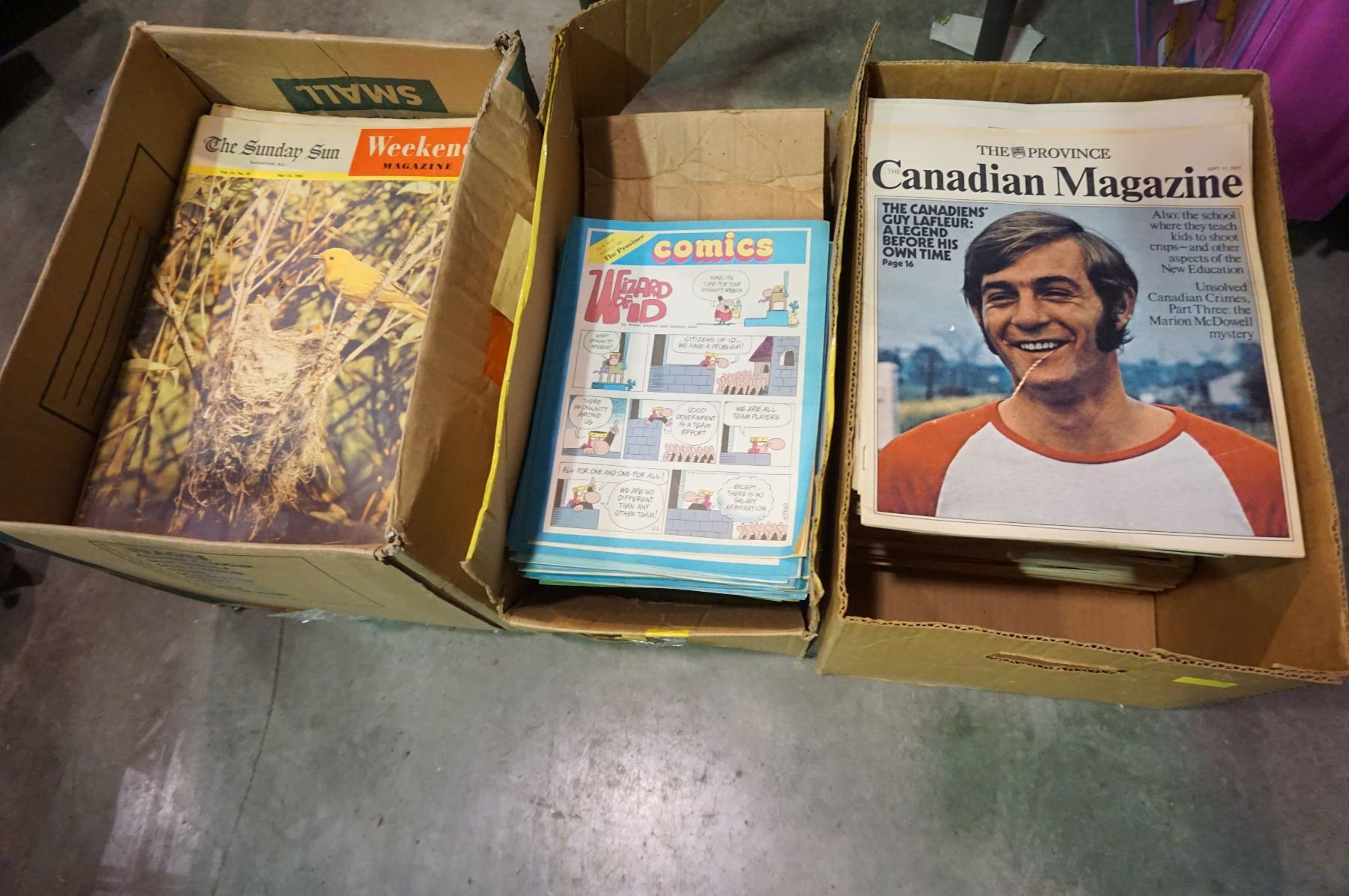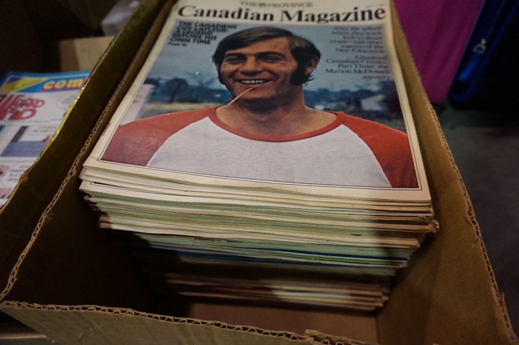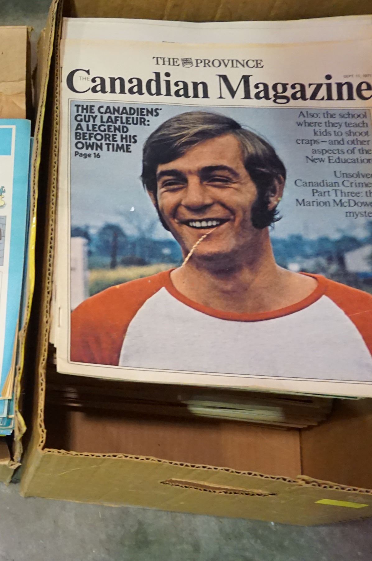 2 BOXES CANADIAN MAGAZINES AND OLD NEWSPAPERS AND COMICS FROM 1980S
