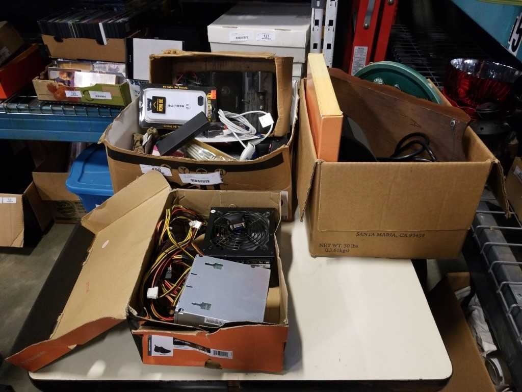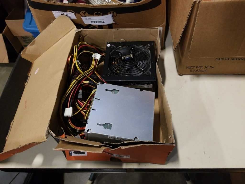 2 BOXES ELECTRONICS, COMPUTER POWER SUPPLIES, ESTATE GOODS