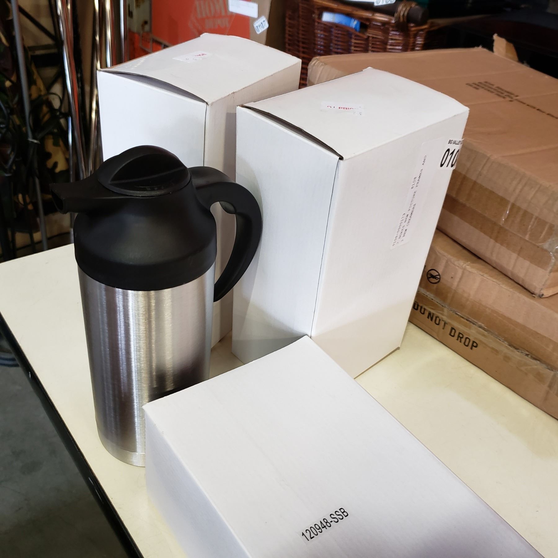 2 BOXES NEW PICTURE FRAMES AND 3 NEW CREAMERS