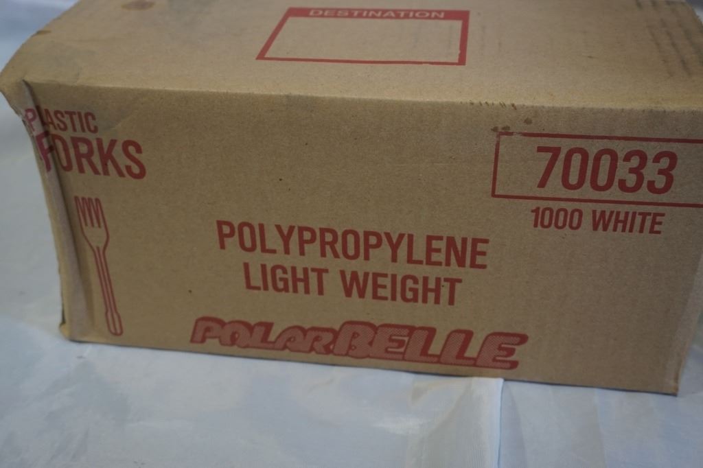 2 BOXES OF 1000 NEW 5  LIGHT DUTY PLASTIC FORKS