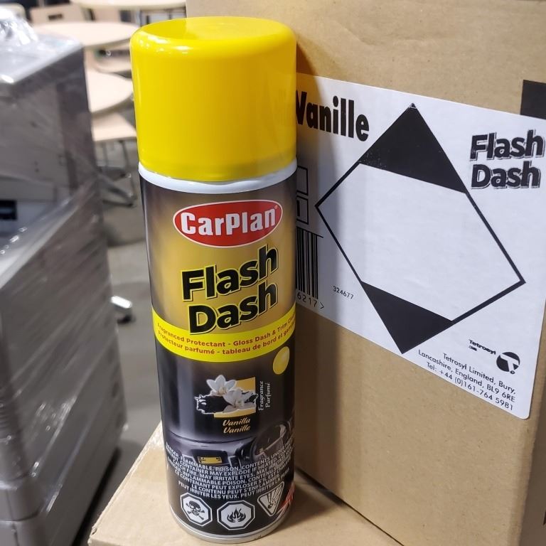 2 BOXES OF 6 BOTTLES FLASH DASH VANILLA AEROSOL DASH BOARD CLEANER