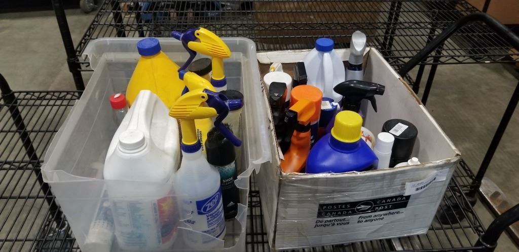 2 BOXES OF ASSORTED CLEANING AND SHOP FLUIDS