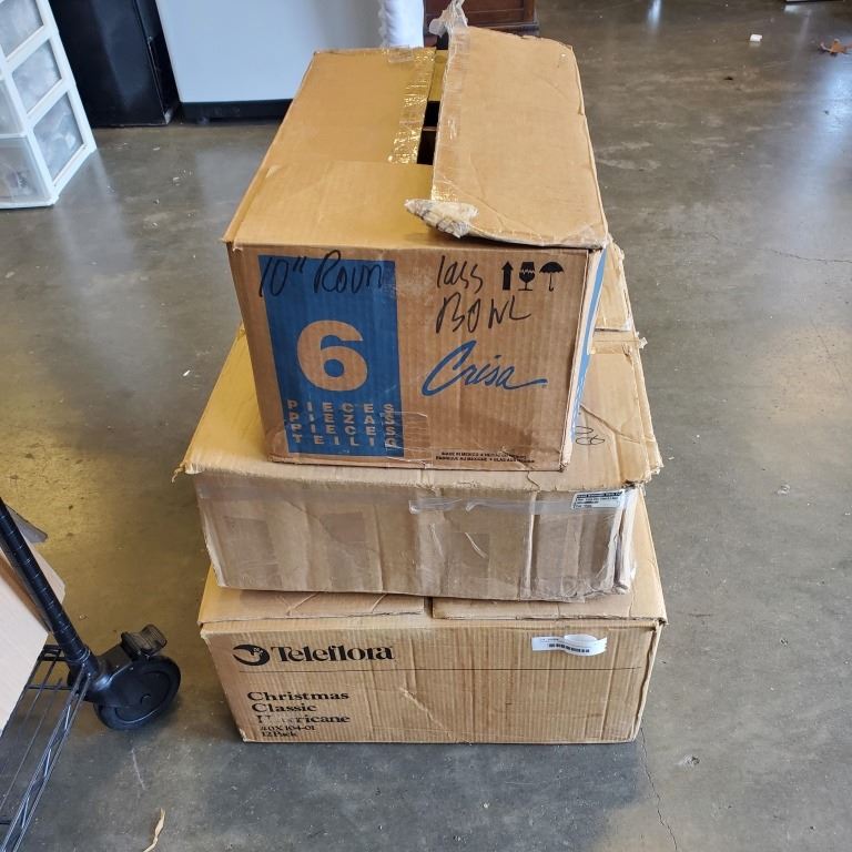 2 BOXES OF ASSORTED GLASS BOWLS, CANDLE HOLDERS, ETC