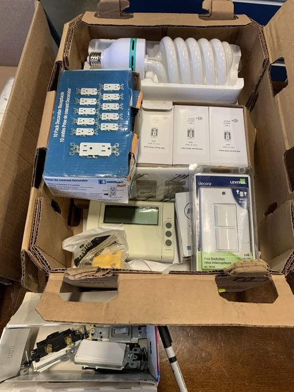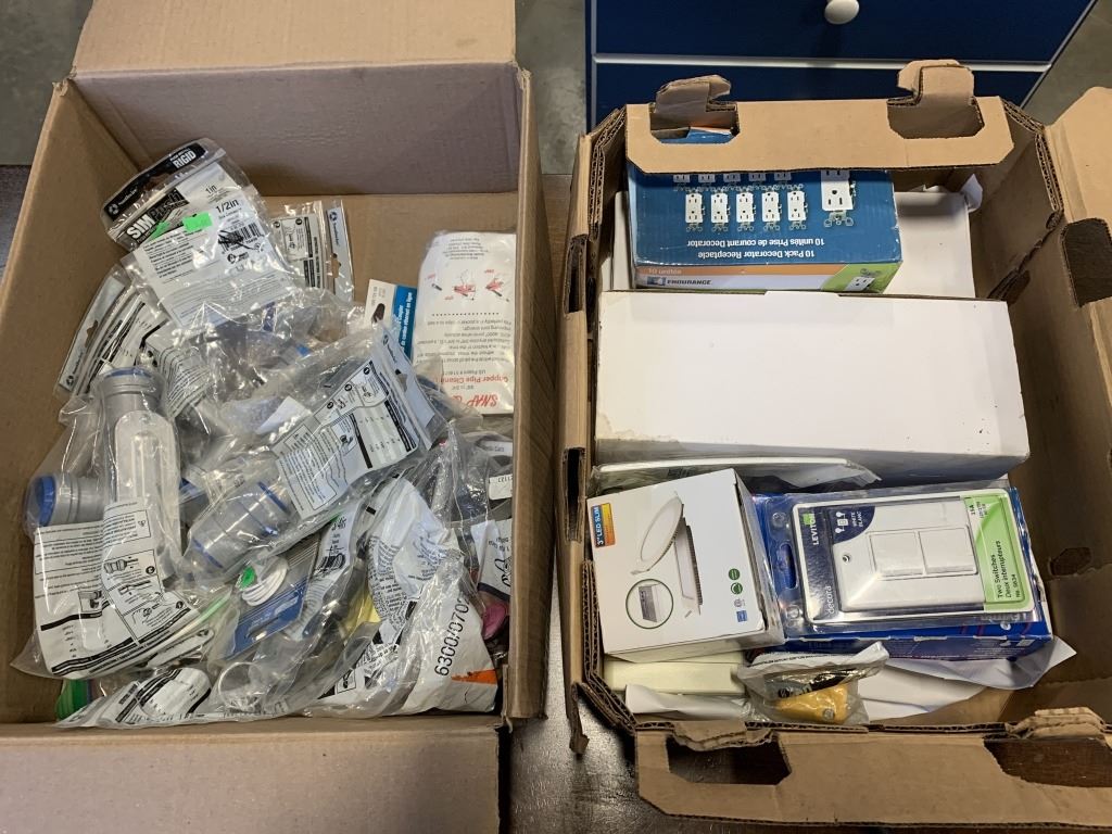 2 BOXES OF ASSORTED NEW ELECTRICAL ITEMS