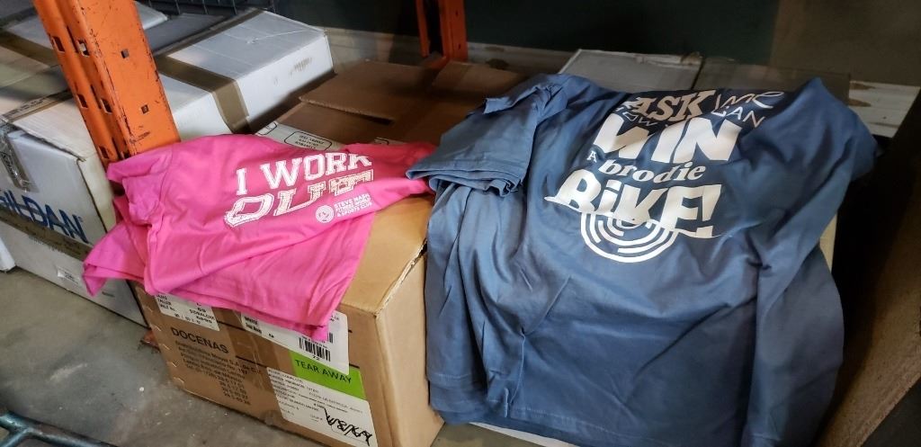 2 BOXES OF ASSORTED PROMOTIONAL SHIRTS, ASSORTED SIZES