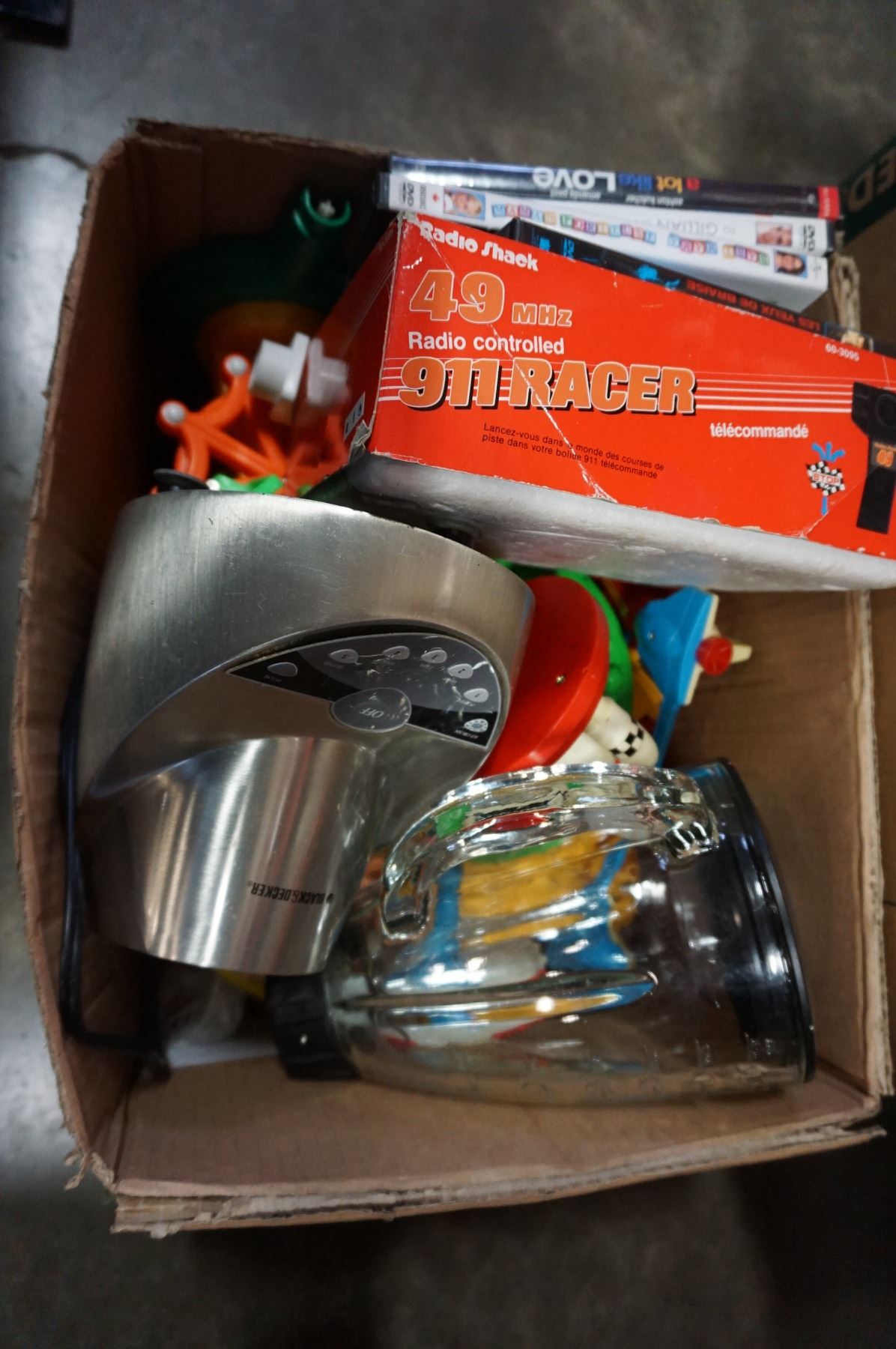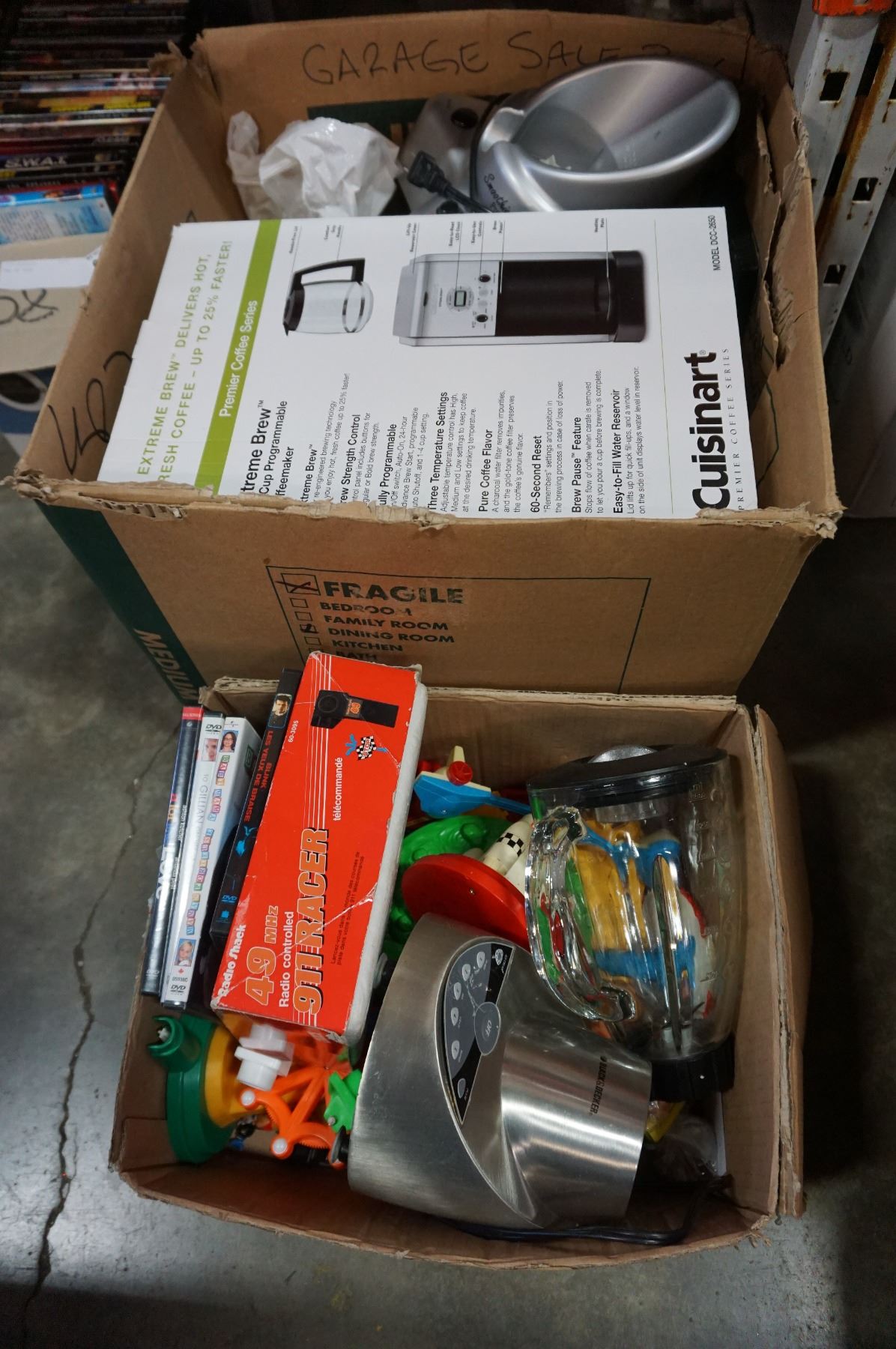 2 BOXES OF BLENDERS, COFFEE MAKER, AND VINTAGE KIDS TOYS