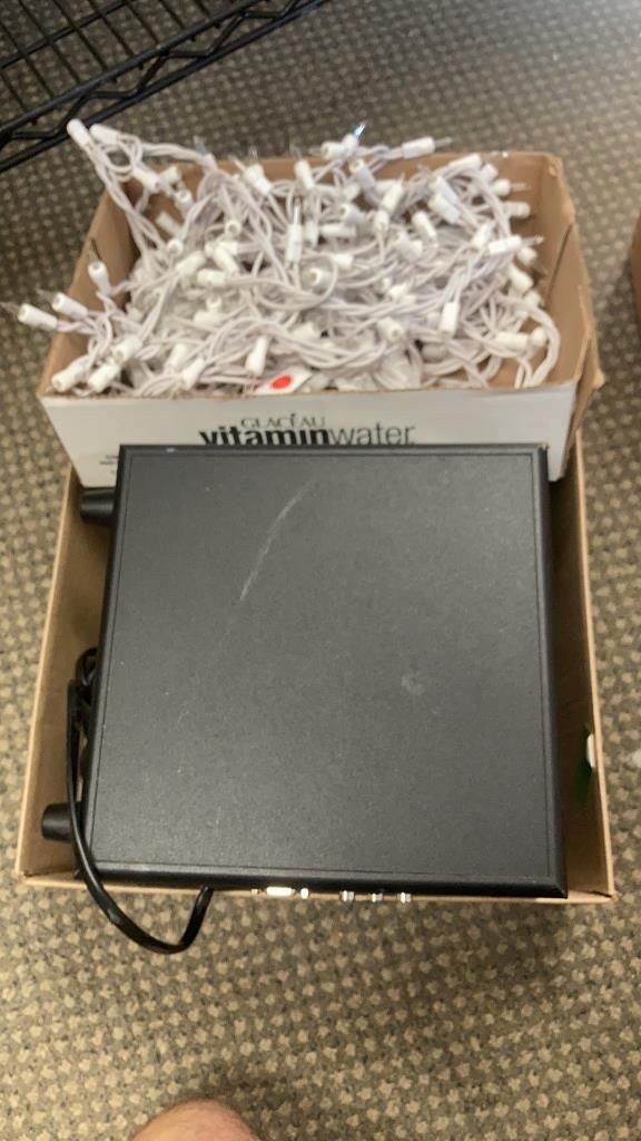 2 BOXES OF BLURAY MOVIES, SPEAKER SET, LIGHTS AND MORE