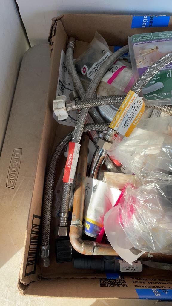 2 BOXES OF BRAIDED HOSES, NEW SWORD STANDS AND MORE