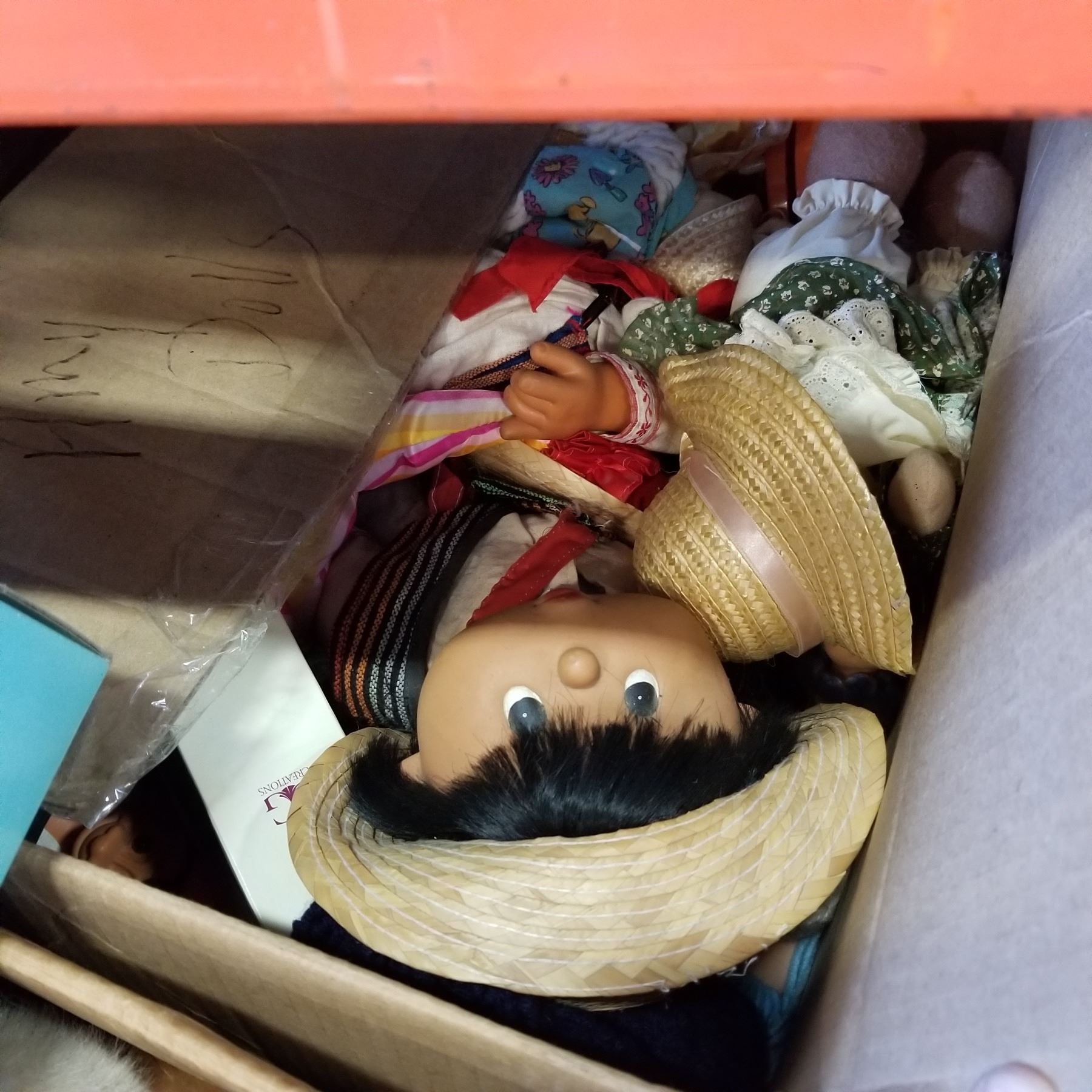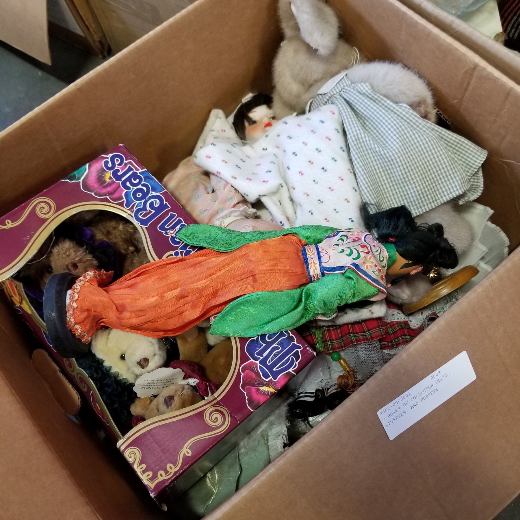 2 BOXES OF COLLECTOR DOLLS, STUFFIES, AND PUPPETS