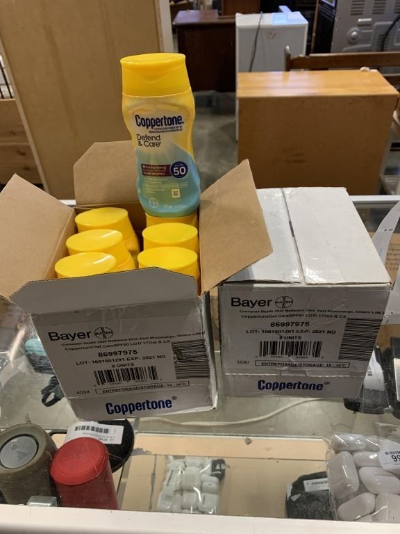 2 BOXES OF COPPERTONE SUNSCREEN 8 BOTTLES PER BOX