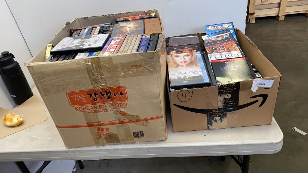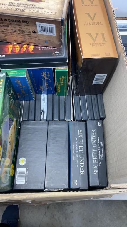 2 BOXES OF DVDS