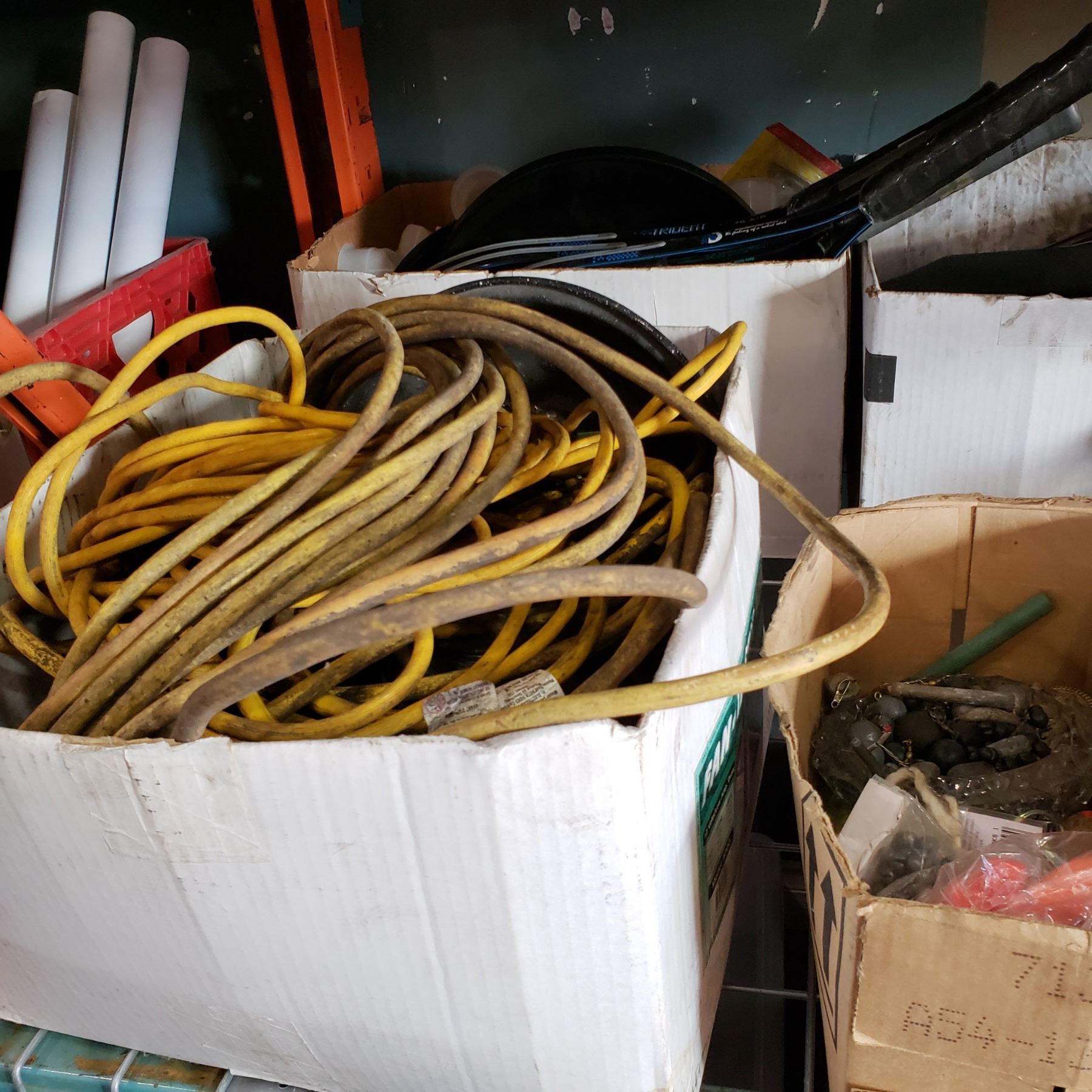 2 BOXES OF EXTENSION CORD AND TENNIS RACKET FRAMES