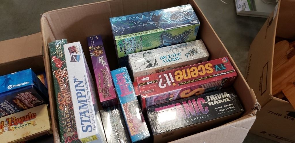 2 BOXES OF FAMILY NIGHT GAMES - SOME NEW IN PACKAGES