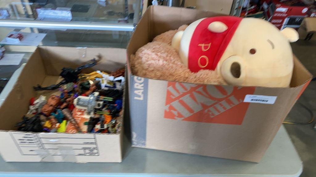 2 BOXES OF FIGURES AND STUFFIES