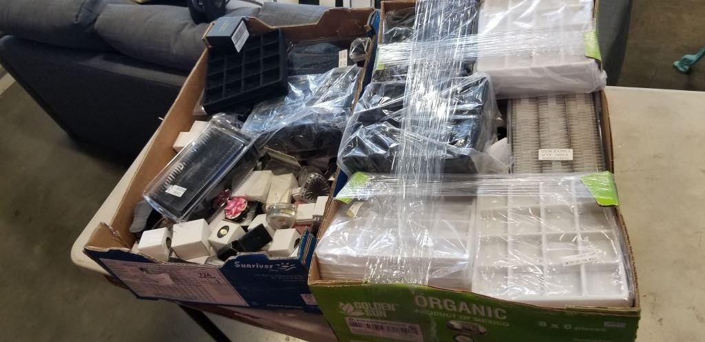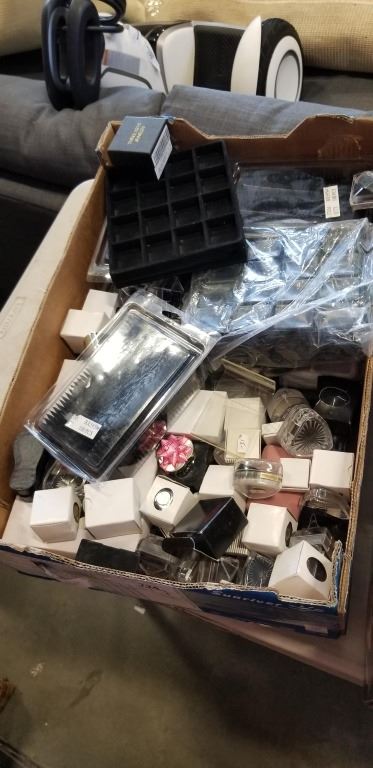 2 BOXES OF JEWELRY DISPLAYERS, BOXES ETC