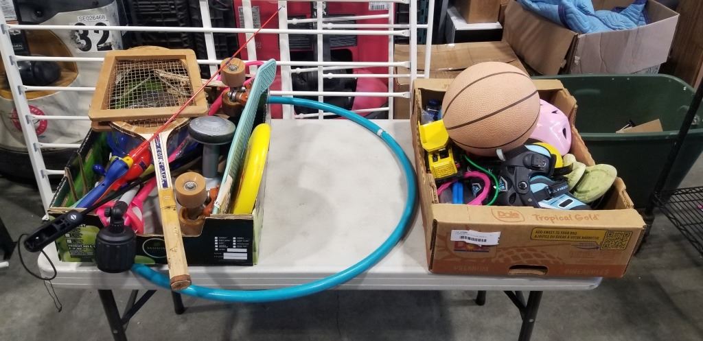 2 BOXES OF KIDS TOYS AND SPORTS GOODS