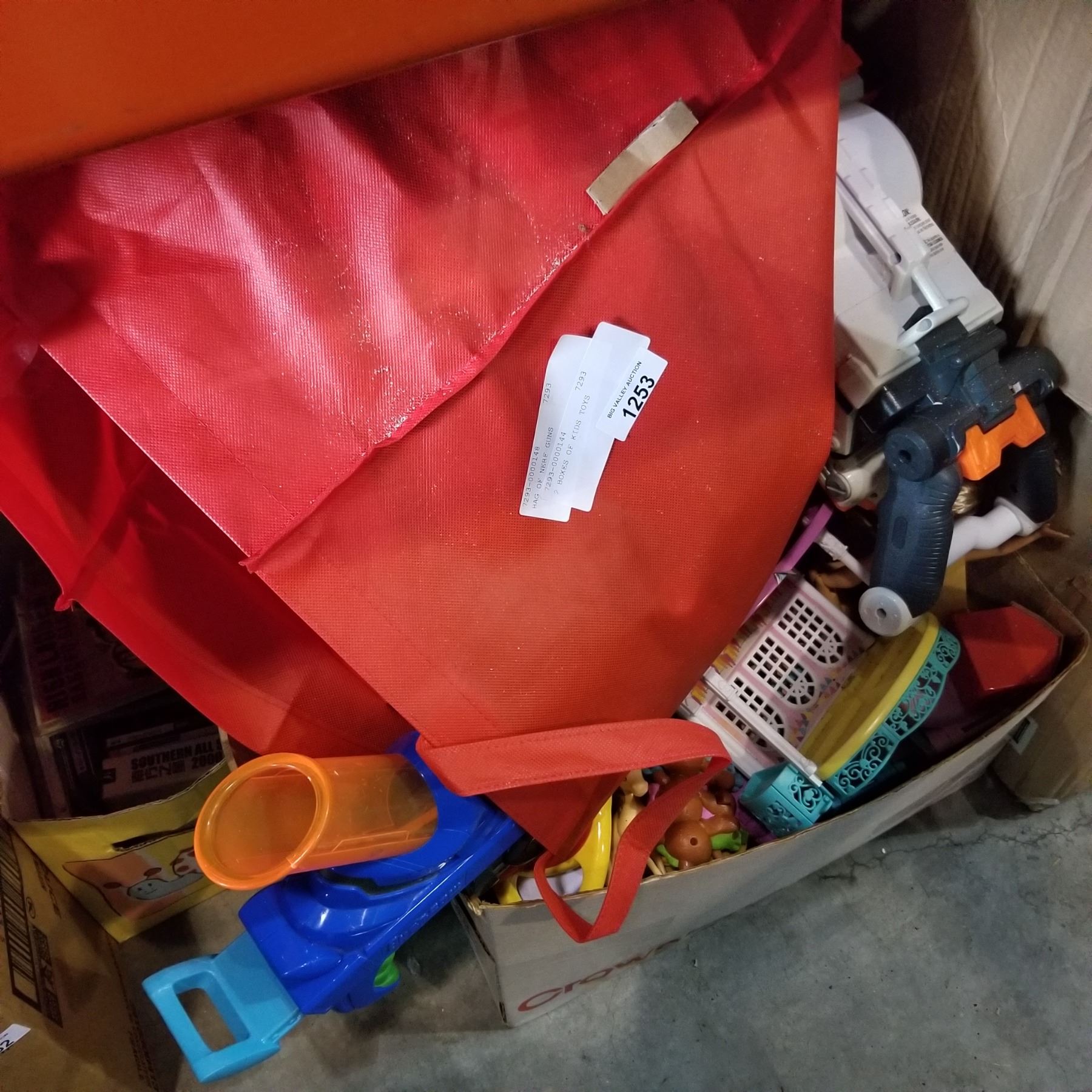 2 BOXES OF KIDS TOYS, BAG OF NERF GUNS