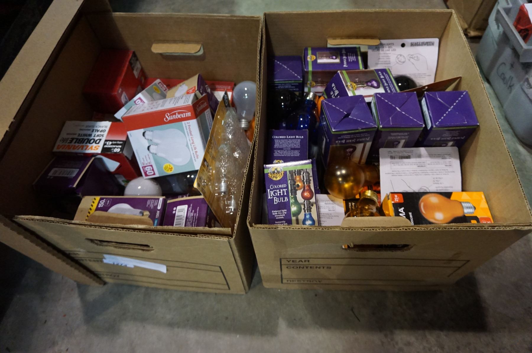 2 BOXES OF LIGHTBULBS, COLORED, PURPLE, ORANGE