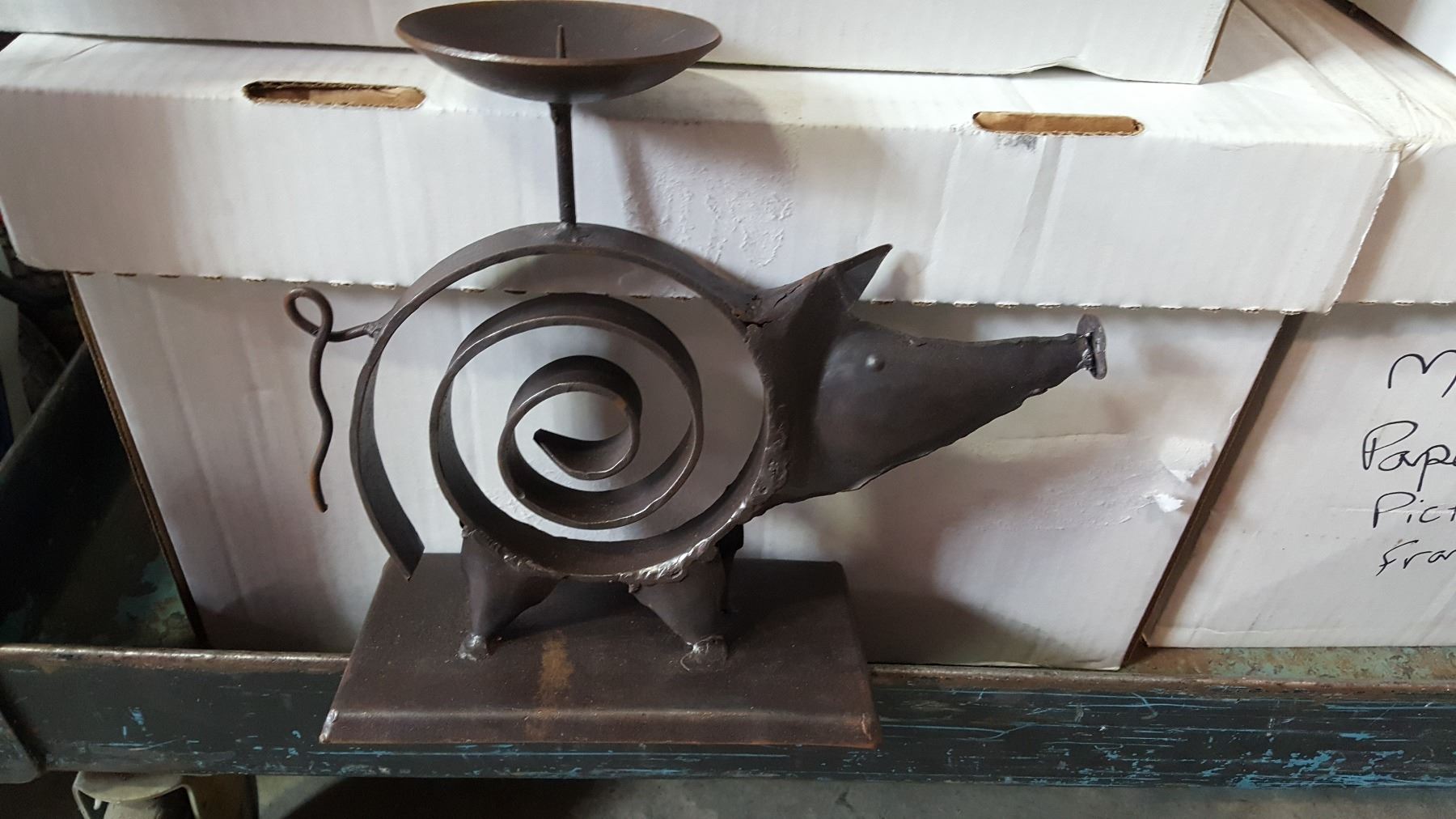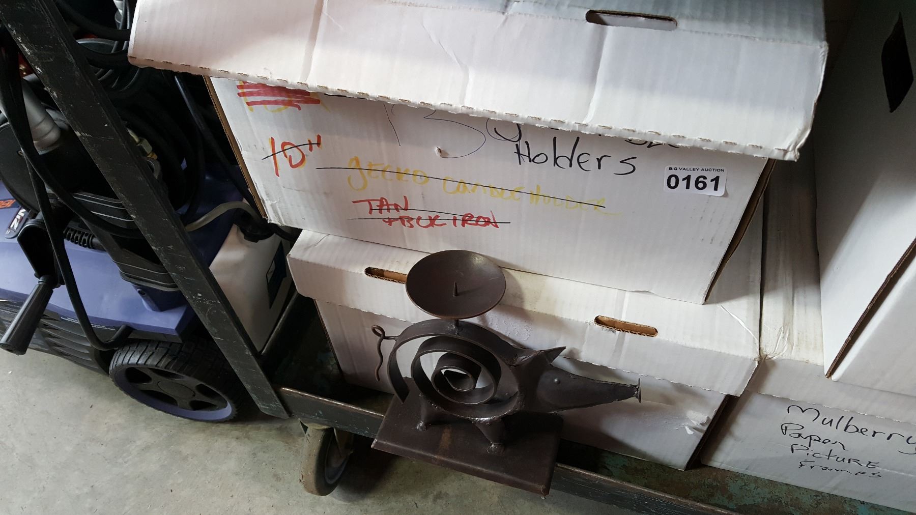 2 BOXES OF METAL CANDLE HOLDERS AND PICTURE FRAMES