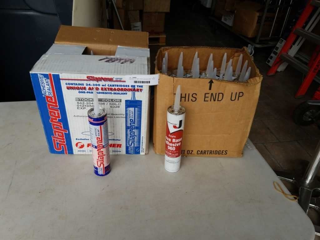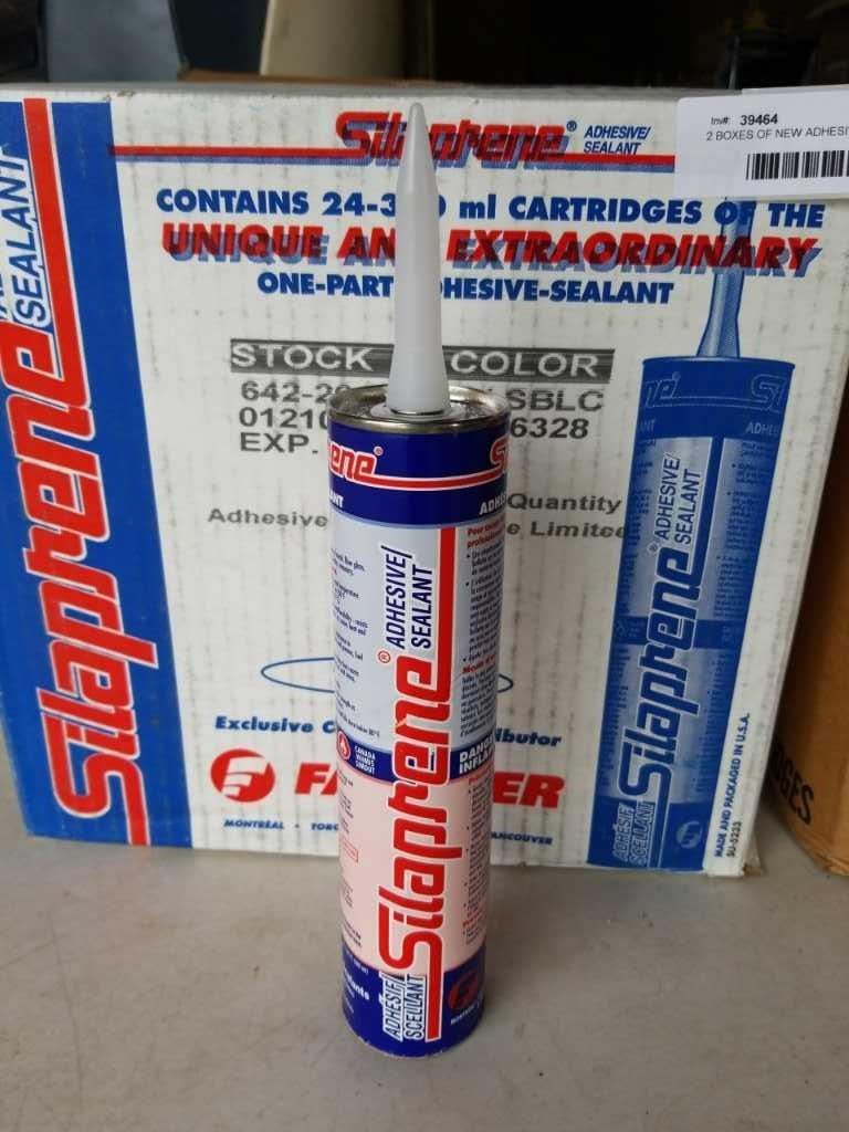 2 BOXES OF NEW ADHESIVE/SEALANT - BOX OF SILAPRENE ADHESIVE/SEALANT AND BOX OF JOHNSONITE ACRYLIC COVE BASE ADHESIVE 960