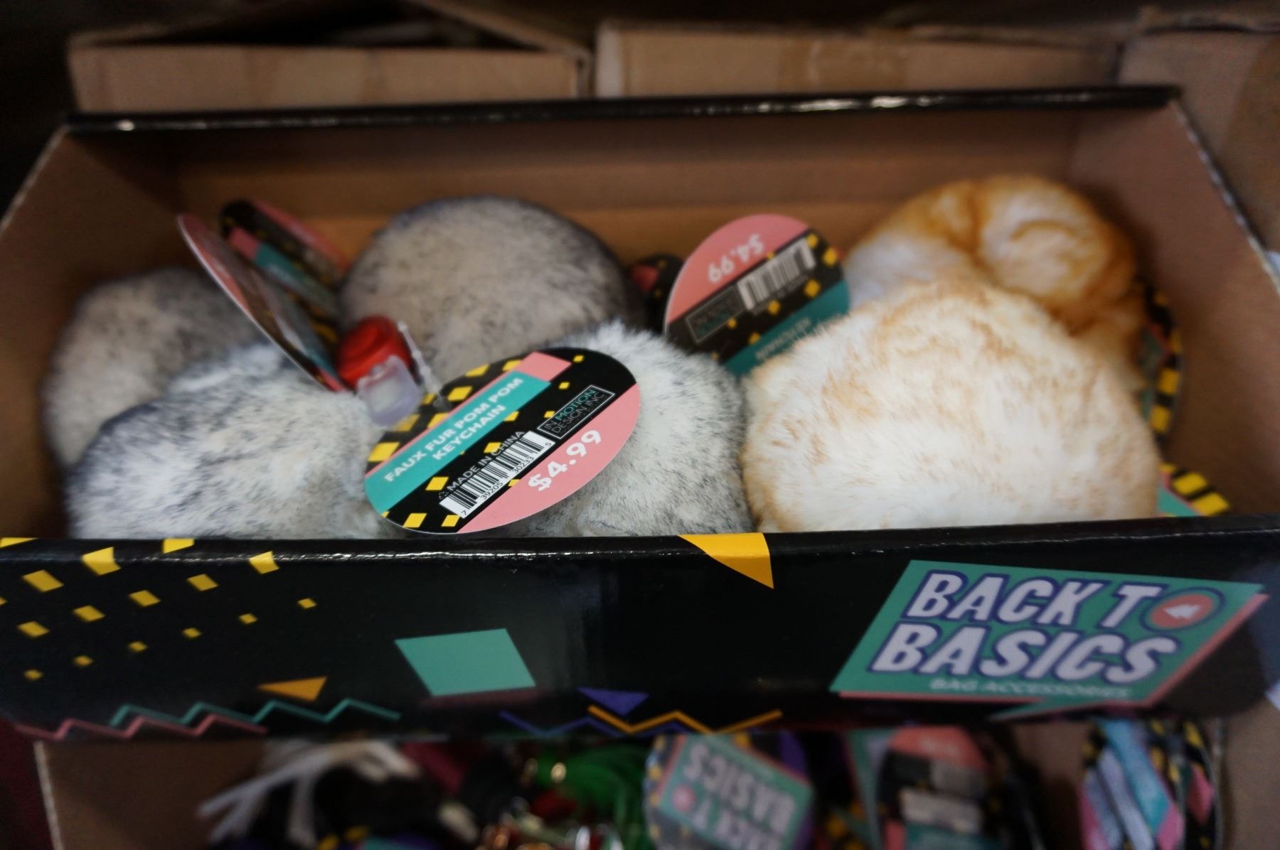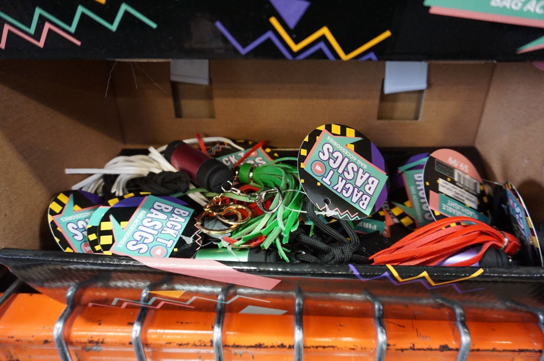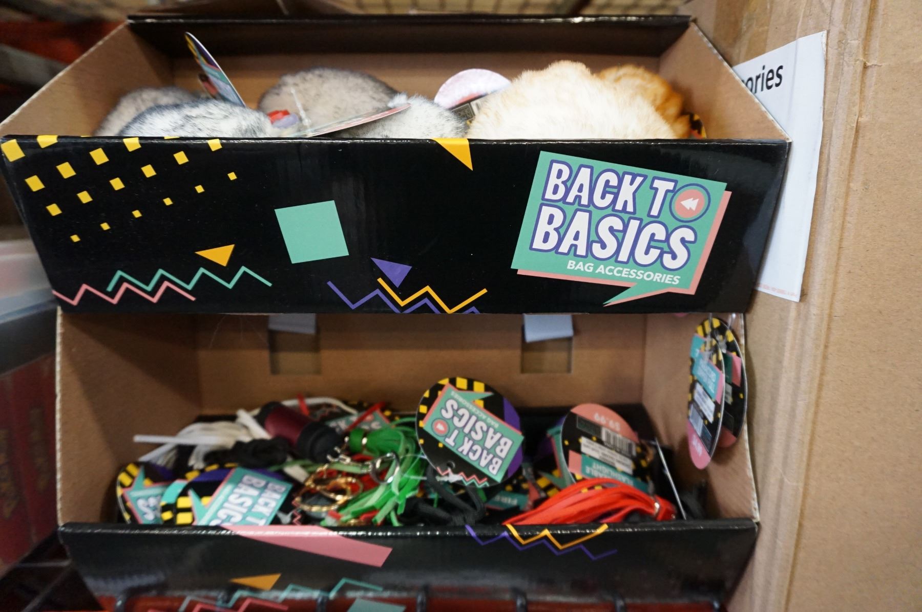 2 BOXES OF NEW BAG ACCESSORIES ON RETAIL DISPLAY STANDS