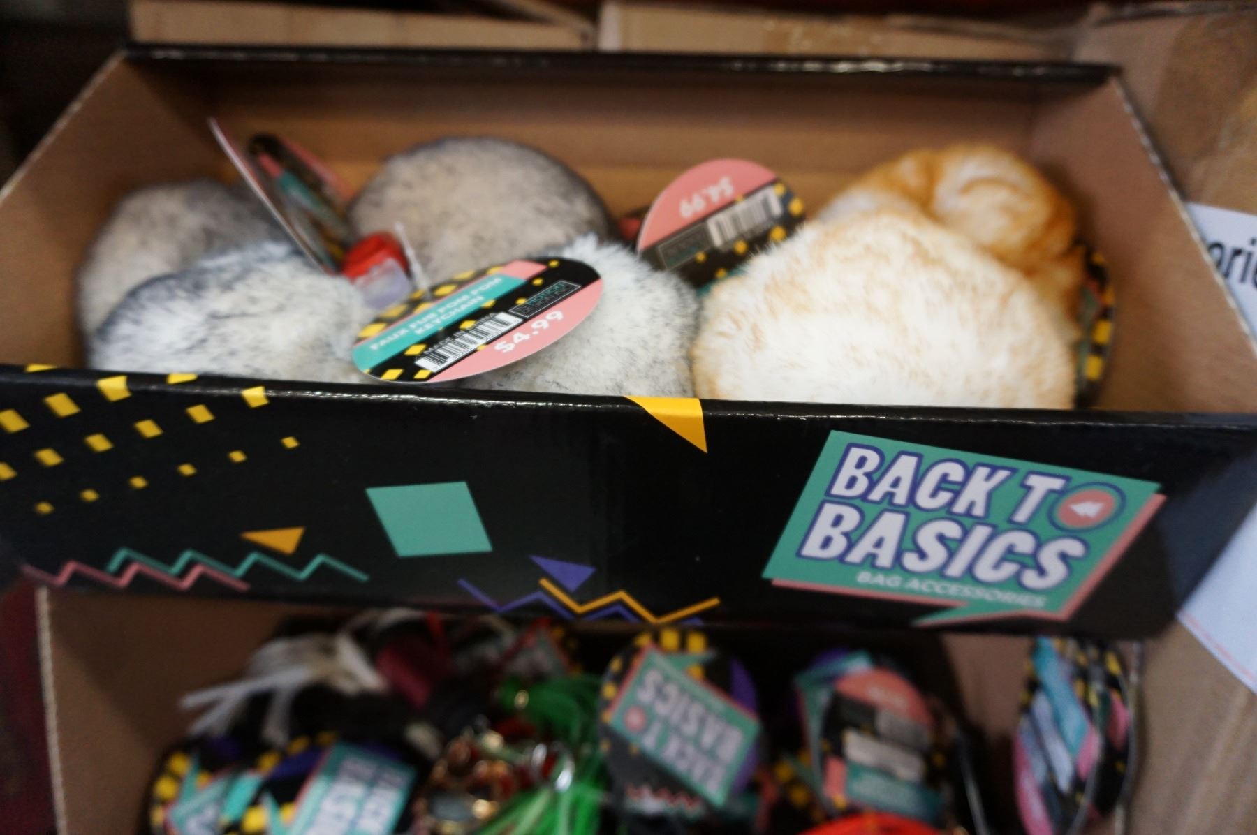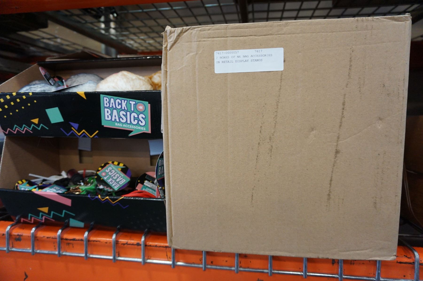 2 BOXES OF NEW BAG ACCESSORIES ON RETAIL DISPLAY STANDS