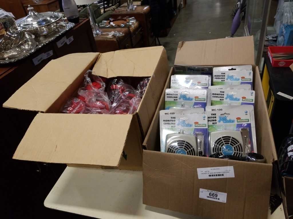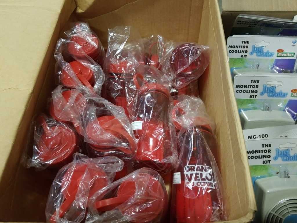 2 BOXES OF NEW WATERBOTTLES AND COOLING FANS
