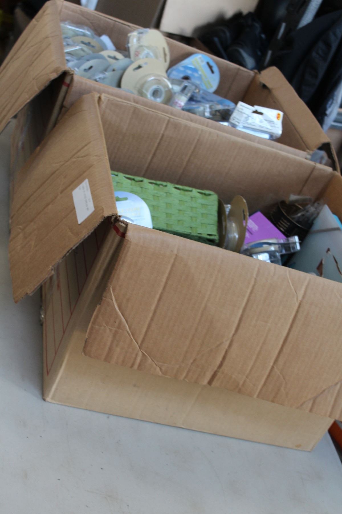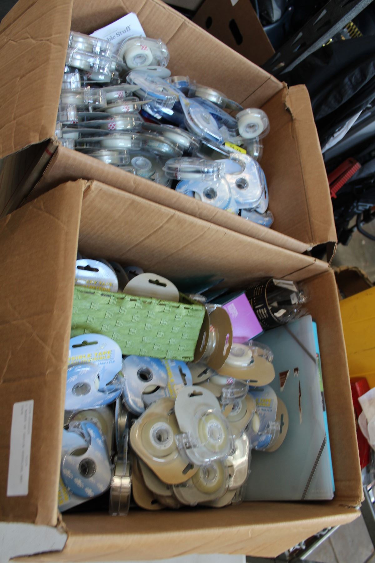 2 BOXES OF OFFICE SUPPLIES AND TAPE
