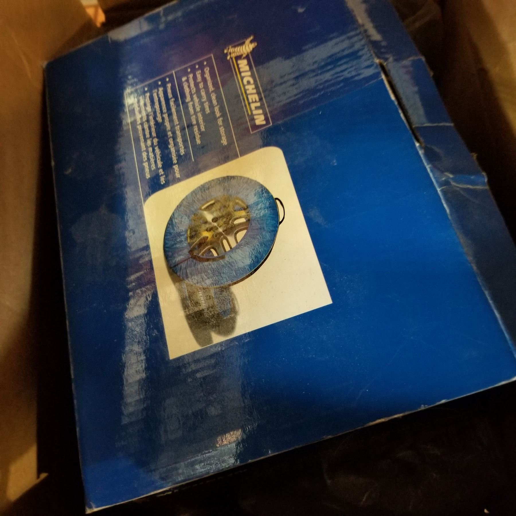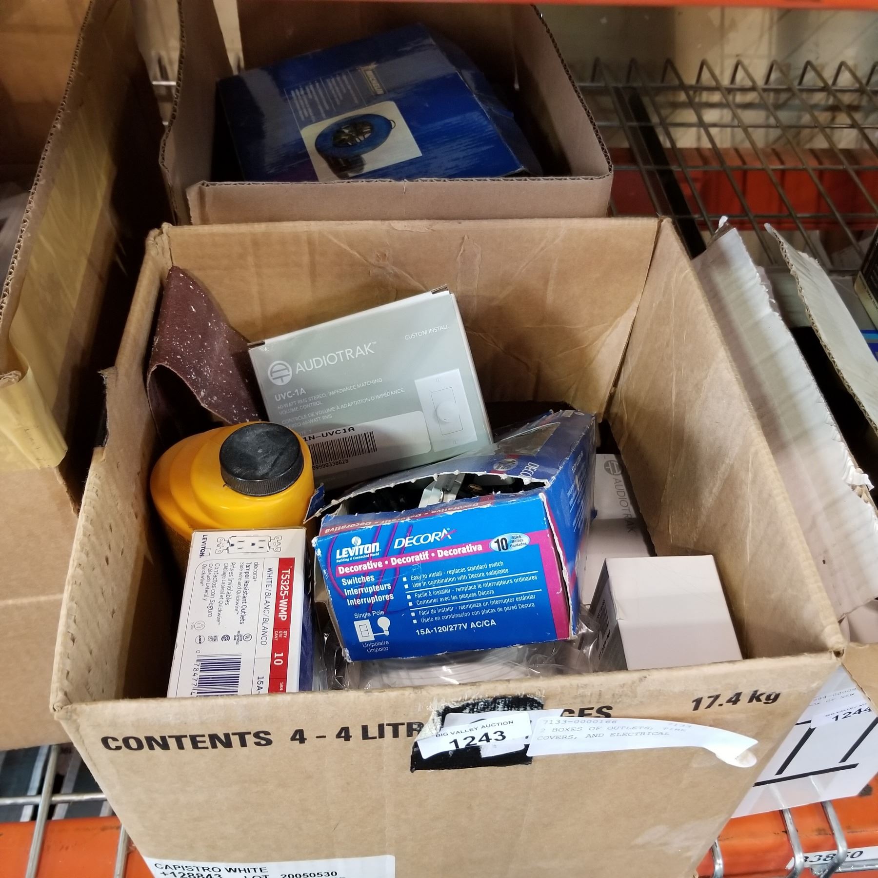 2 BOXES OF OUTLETS, TIRE COVERS, AND ELECTRICAL