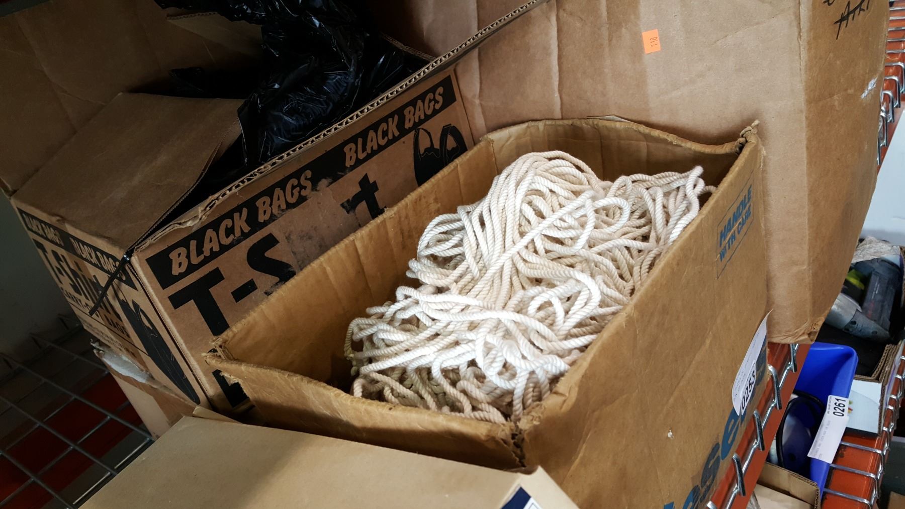2 BOXES OF PLASTIC BAGS AND BOX OF ROPE