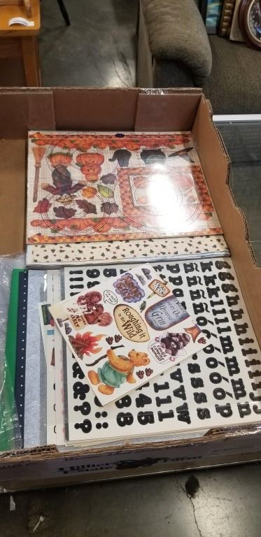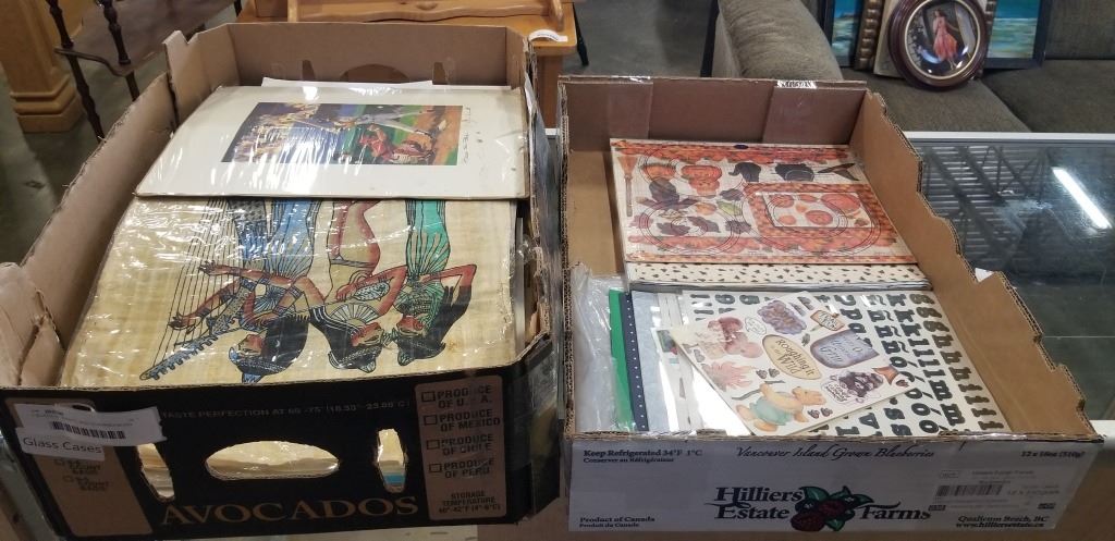 2 BOXES OF PRINTS AND SCRAPBOOKING SUPPLIES