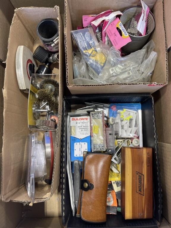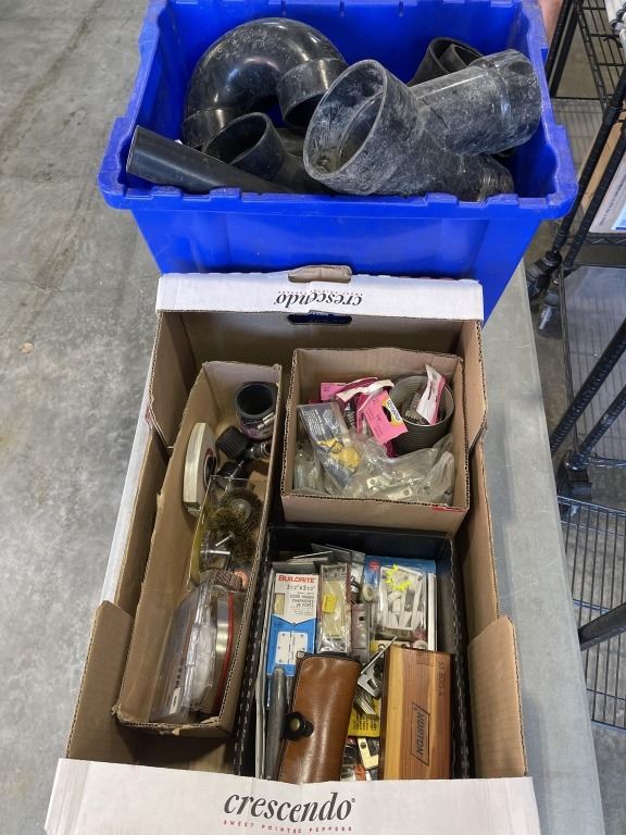 2 BOXES OF PVC PIPE AND ASSORTED HARDWARE
