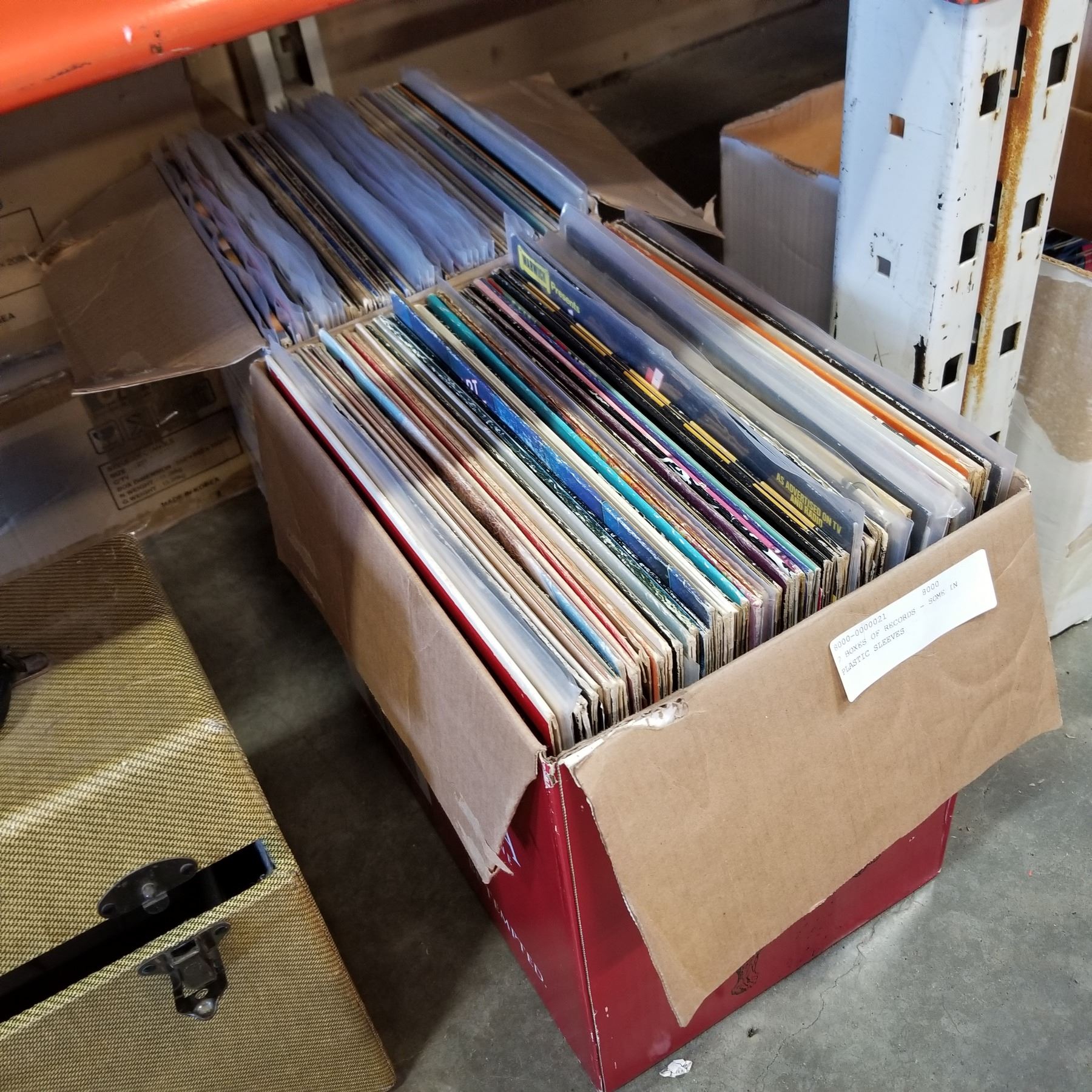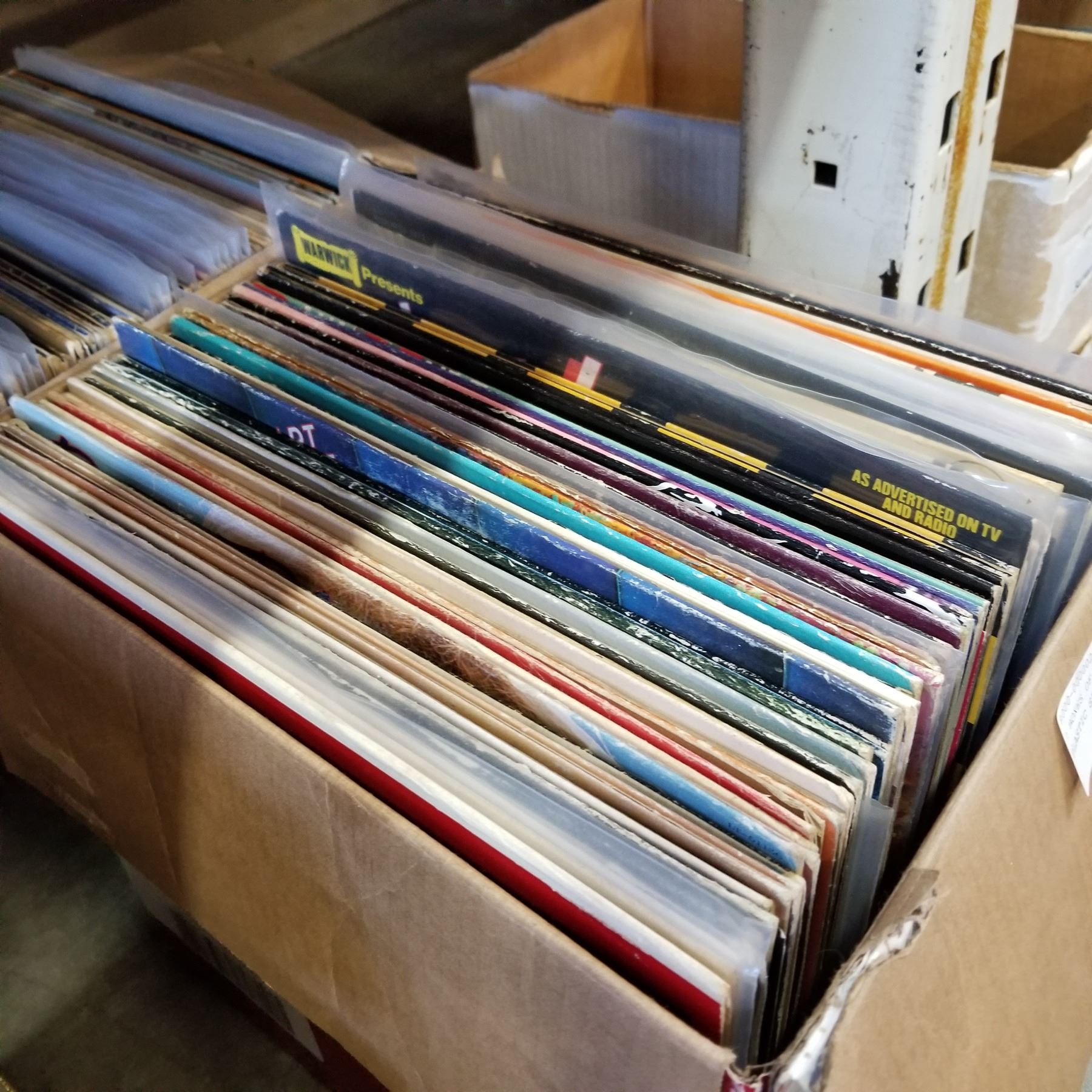 2 BOXES OF RECORDS - SOME IN PLASTIC SLEEVES