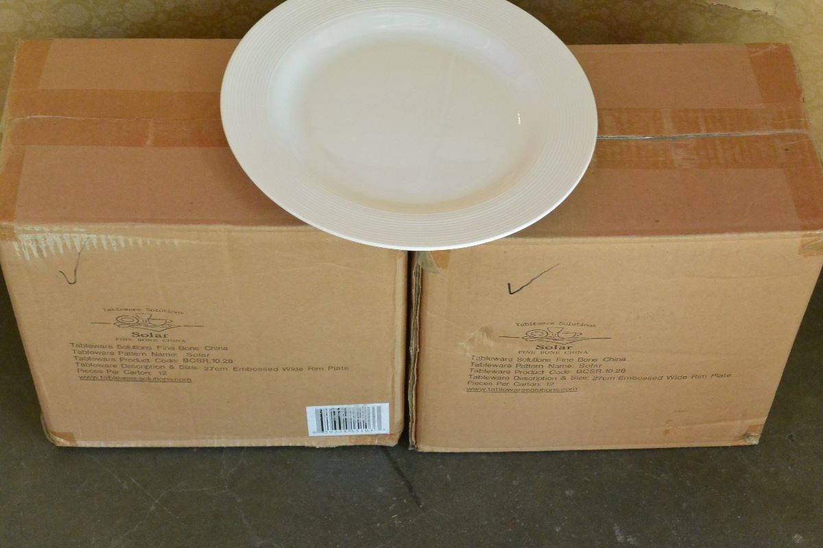2 BOXES OF SOLAR FINE BONE CHINA 10.5" EMBOSSED RIM
