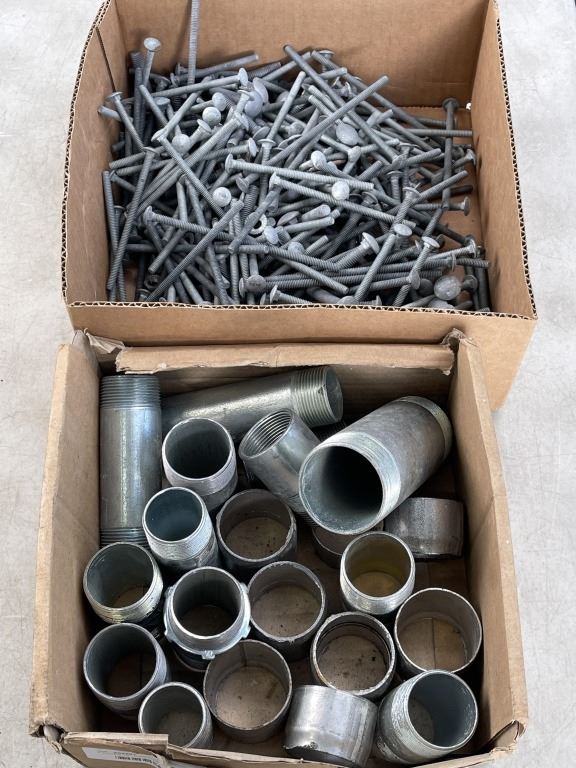 2 BOXES OF THREADED PIPES AND 6" AND SHORTER BOLTS